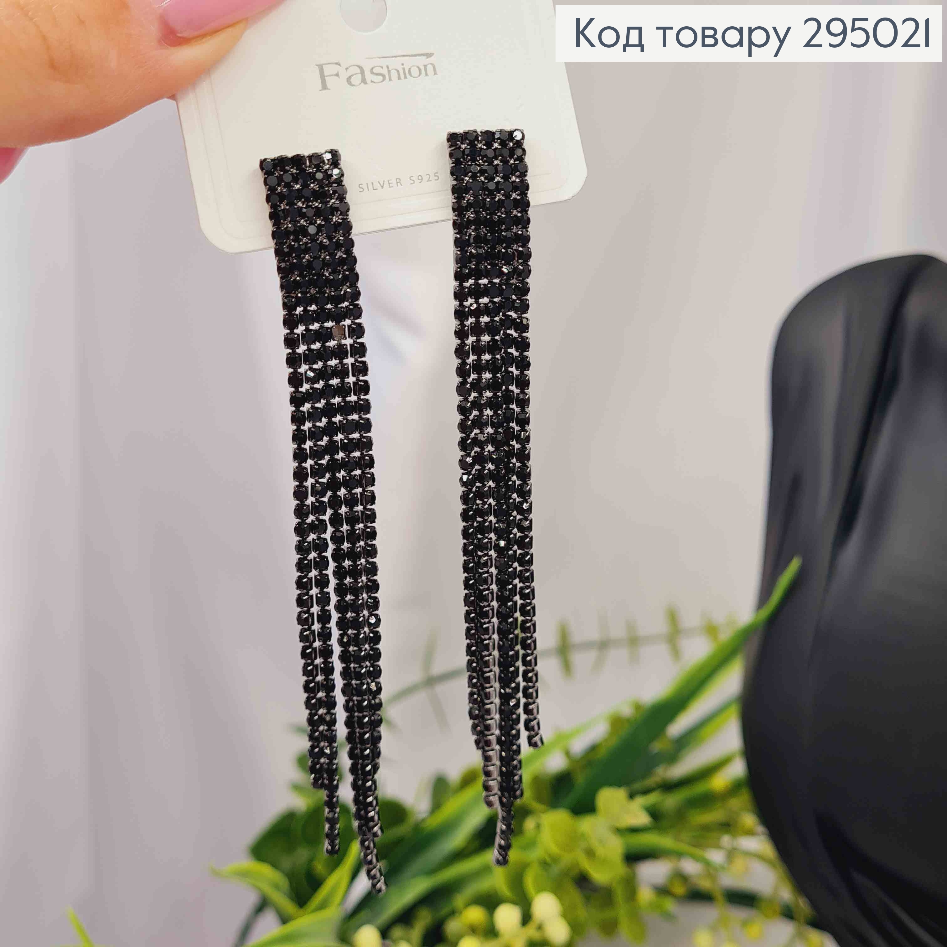 Вечерние-Свадебные серьги гвоздики, с пятью цепочками из камней, 10,5см, Черного цвета
