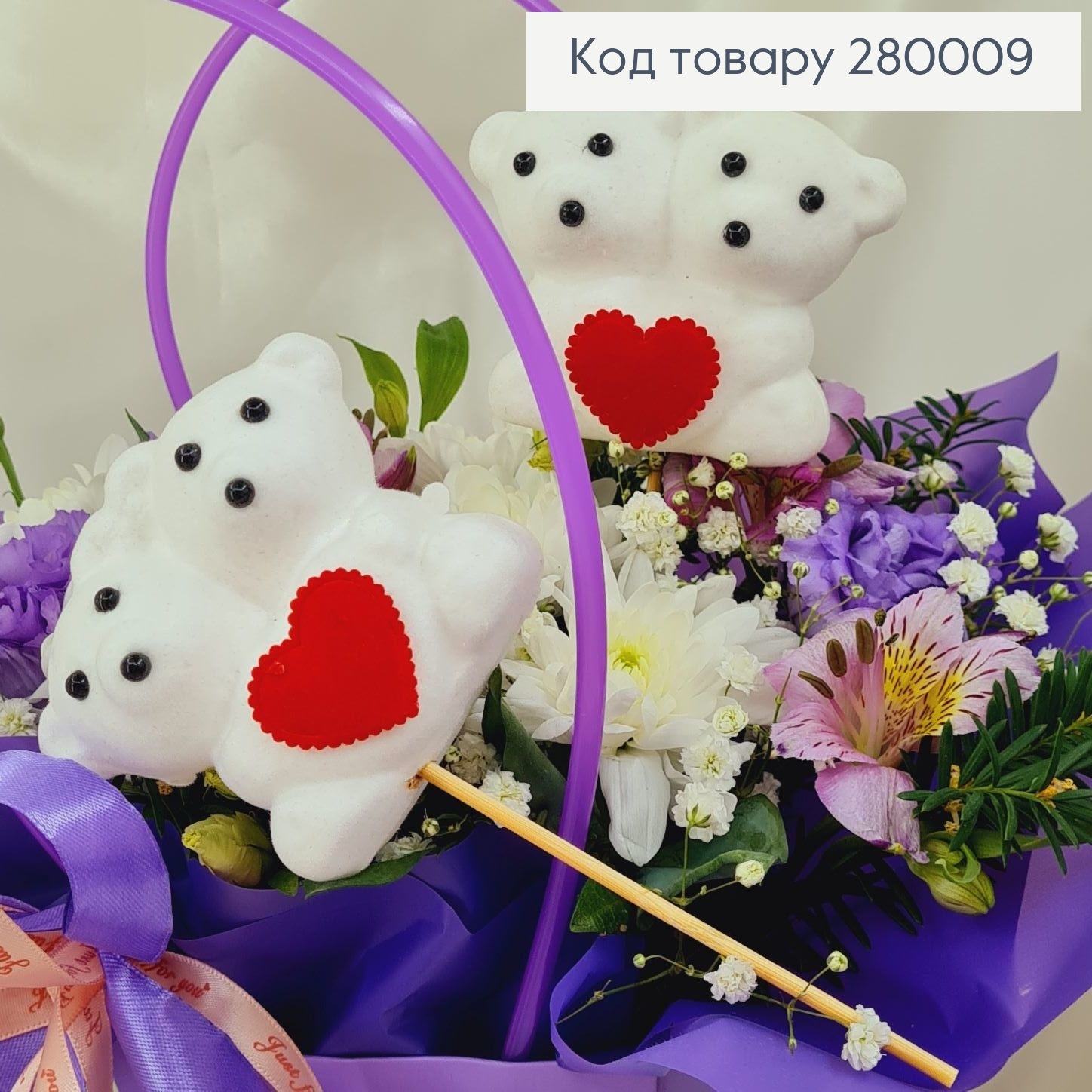 ¶Мишка двойной пенопластовый декор на деревянной палочке 7+10 см белый