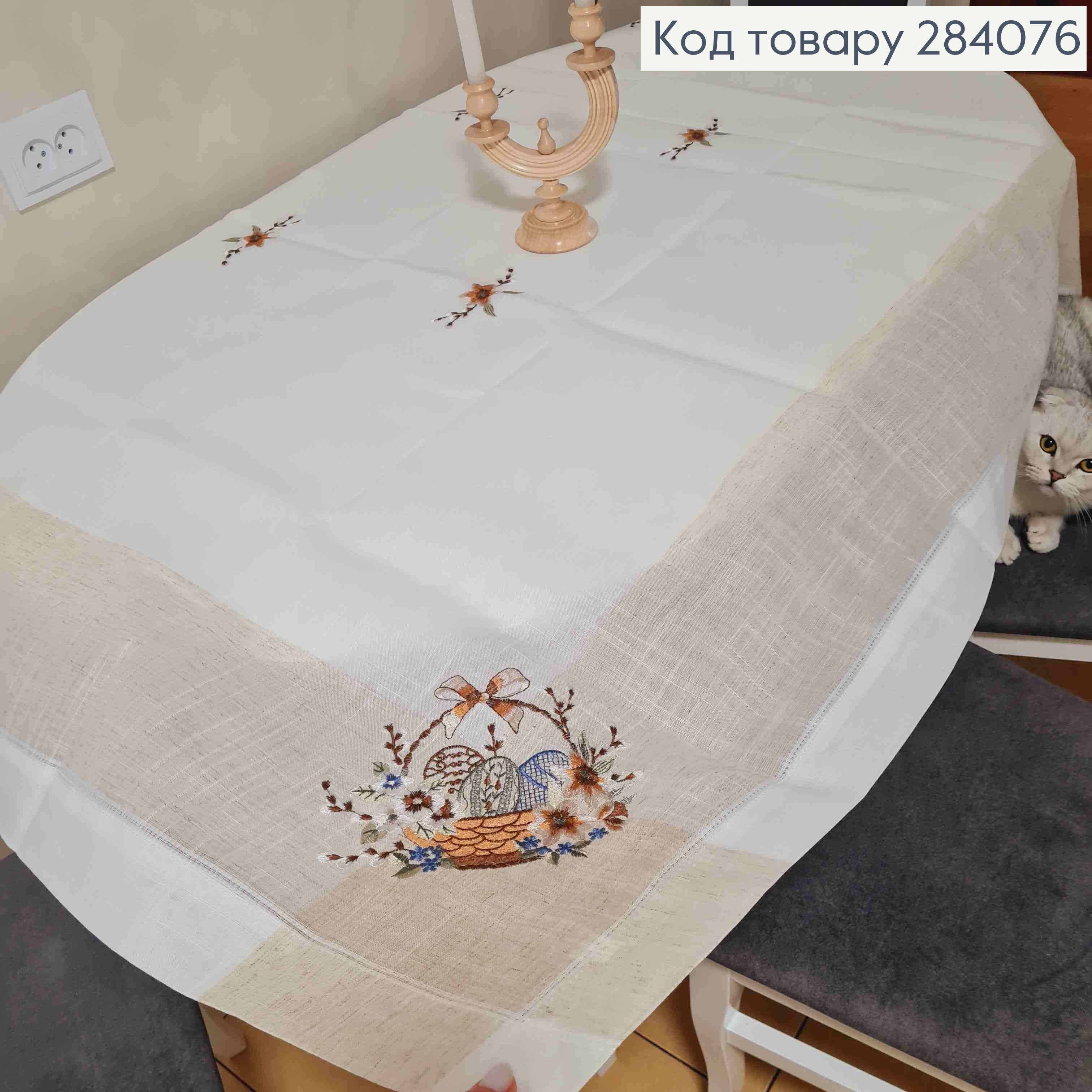 Пасхальная скатерть, "Лен", с вышивкой "Крашанки в Корзине", размер 150*220см