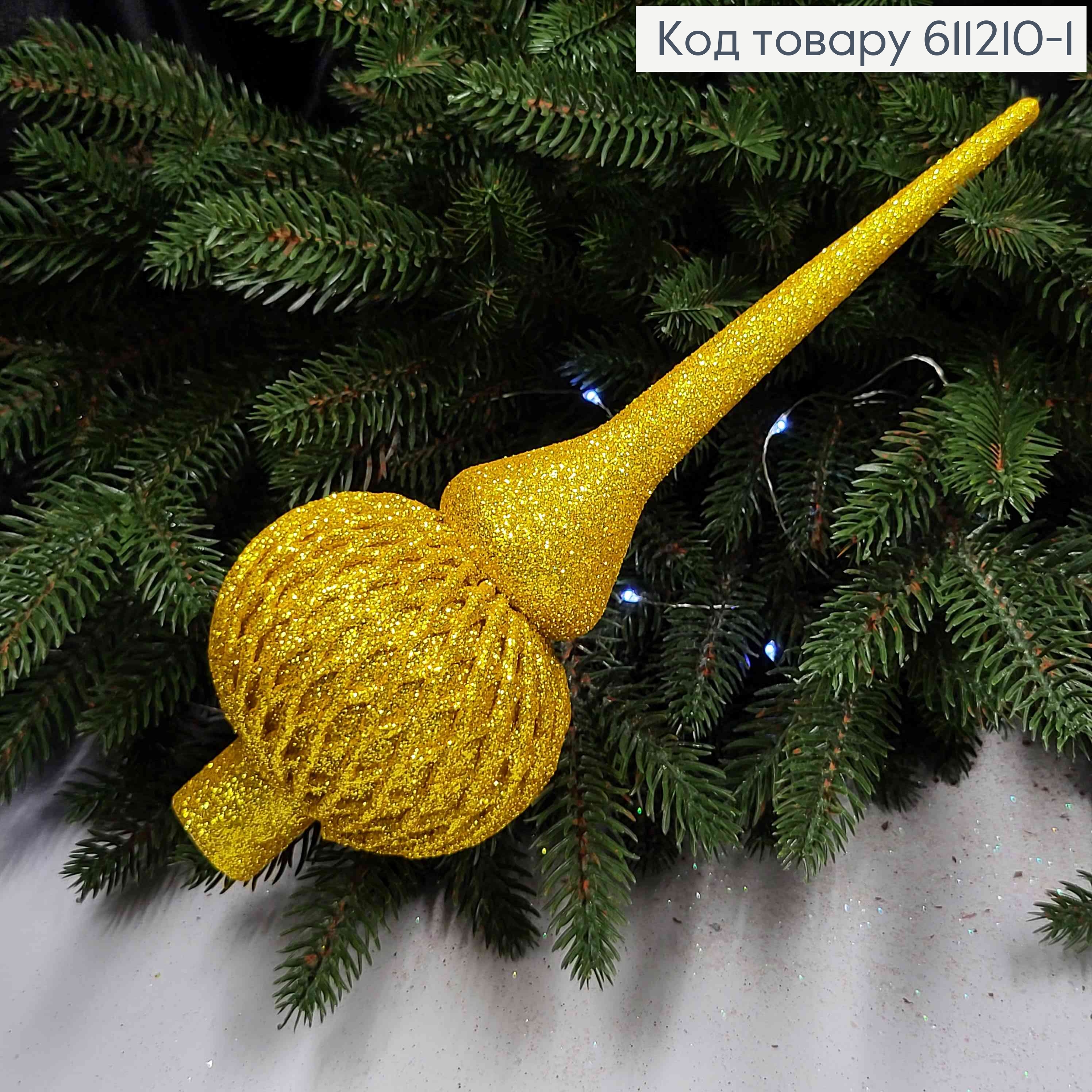 Верхушка блеск ЗОЛОТАЯ, высота 25см, Новогоднее украшение, пластик, Украина