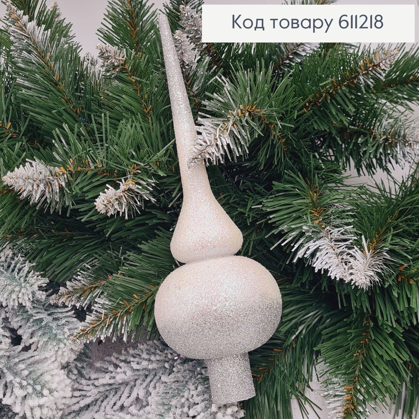 Верхушка на елку Блеск Омбре СЕРЕБРЯНОЙ+БЕЛАЯ, 25см, Украина