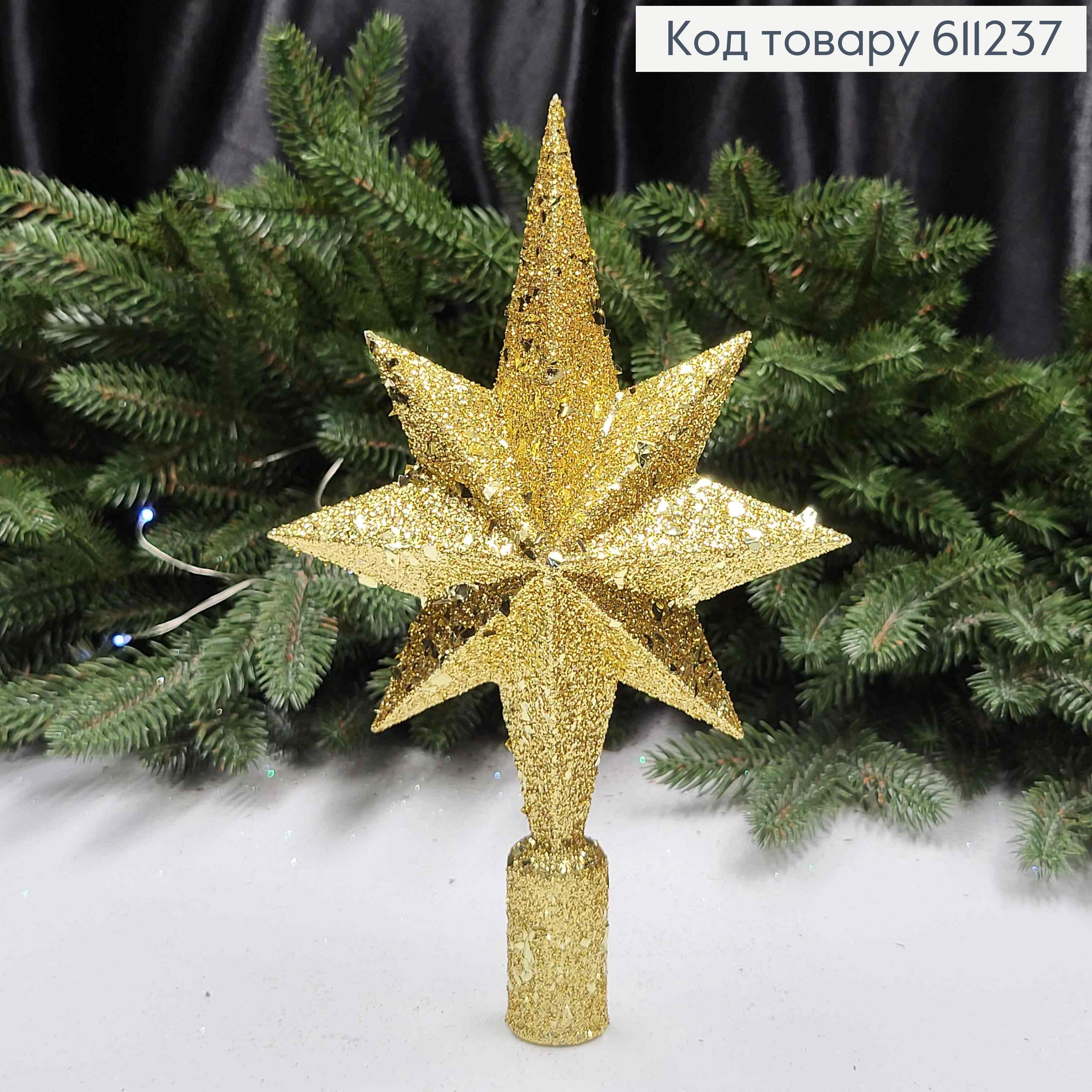 Верхушка блеск ЗОЛОТАЯ, высота 25см, Новогоднее украшение, пластик, Украина 611257 фото