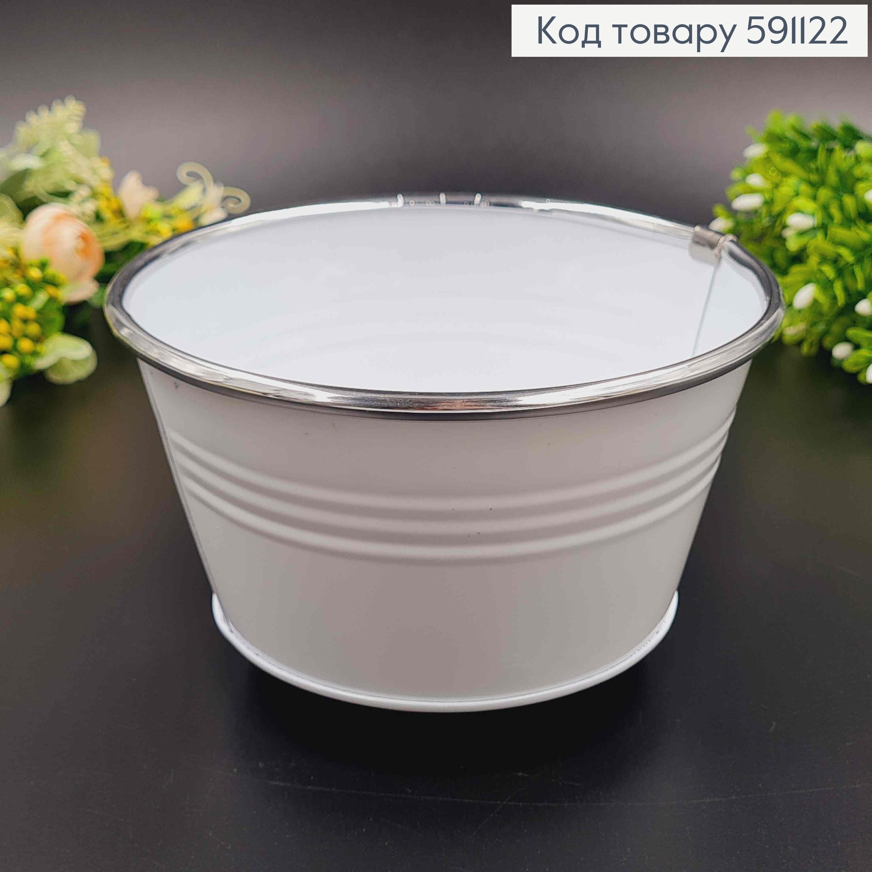 Ведерце-кашпо, металл, белого цвета, высота 9см, Польша