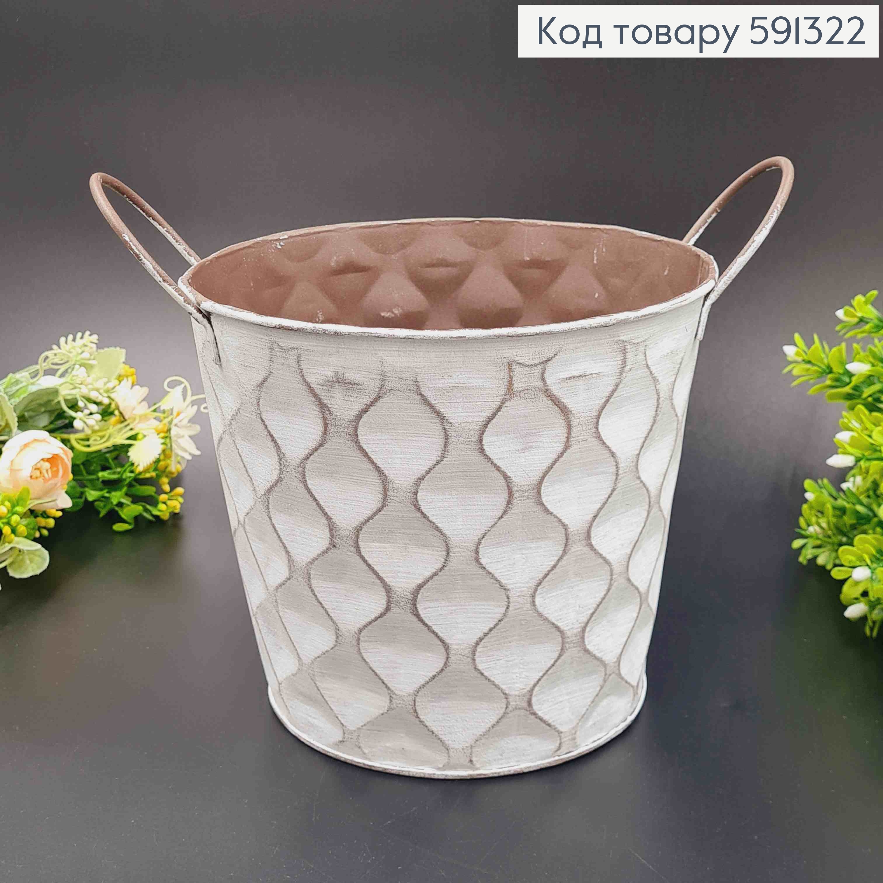 Ведерко-кашпо, металл, белого цвета, с объемным узором, высота 16см, Польша