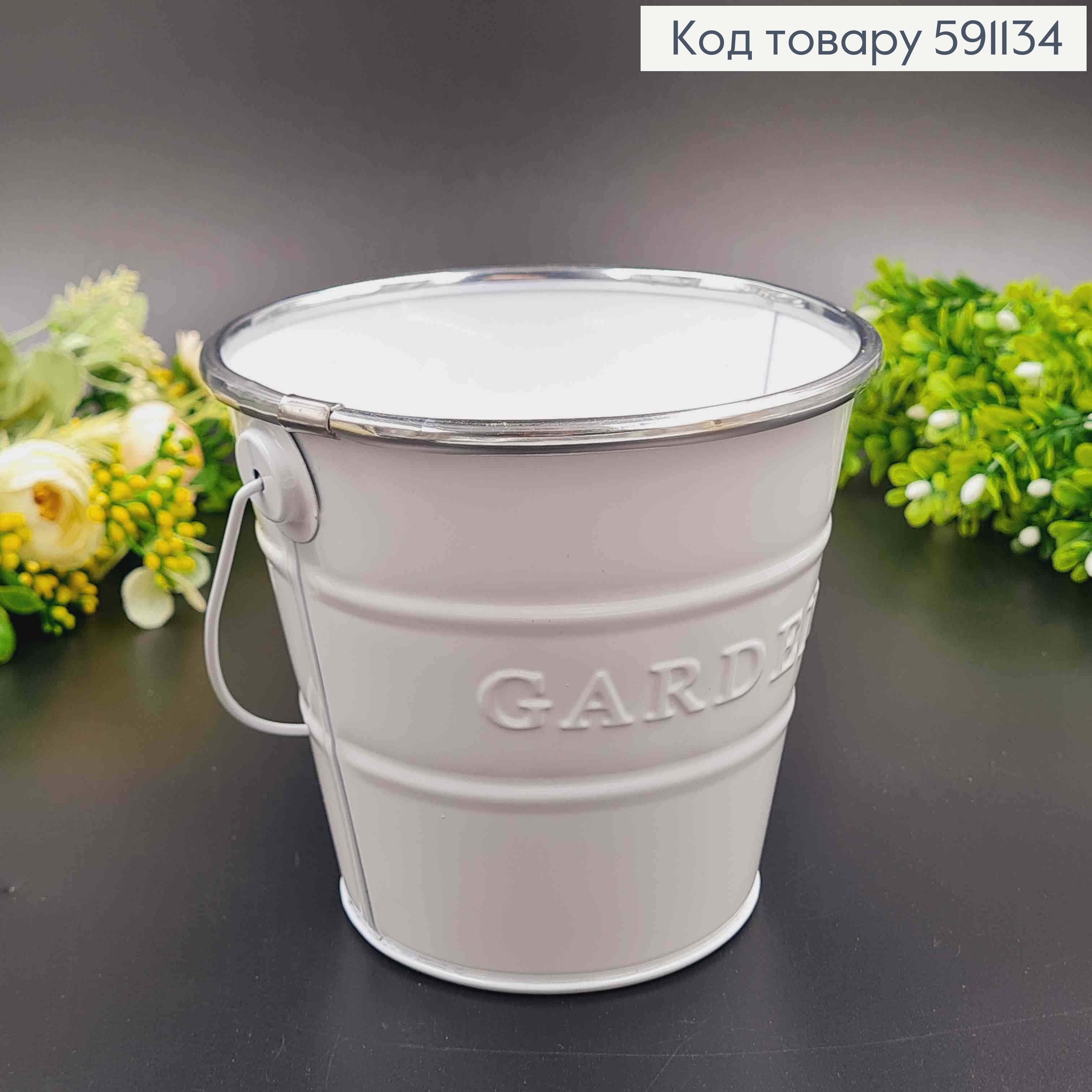 Ведерко-кашпо, металл, белого цвета с тиснением "Garden", высота 12см, Польша