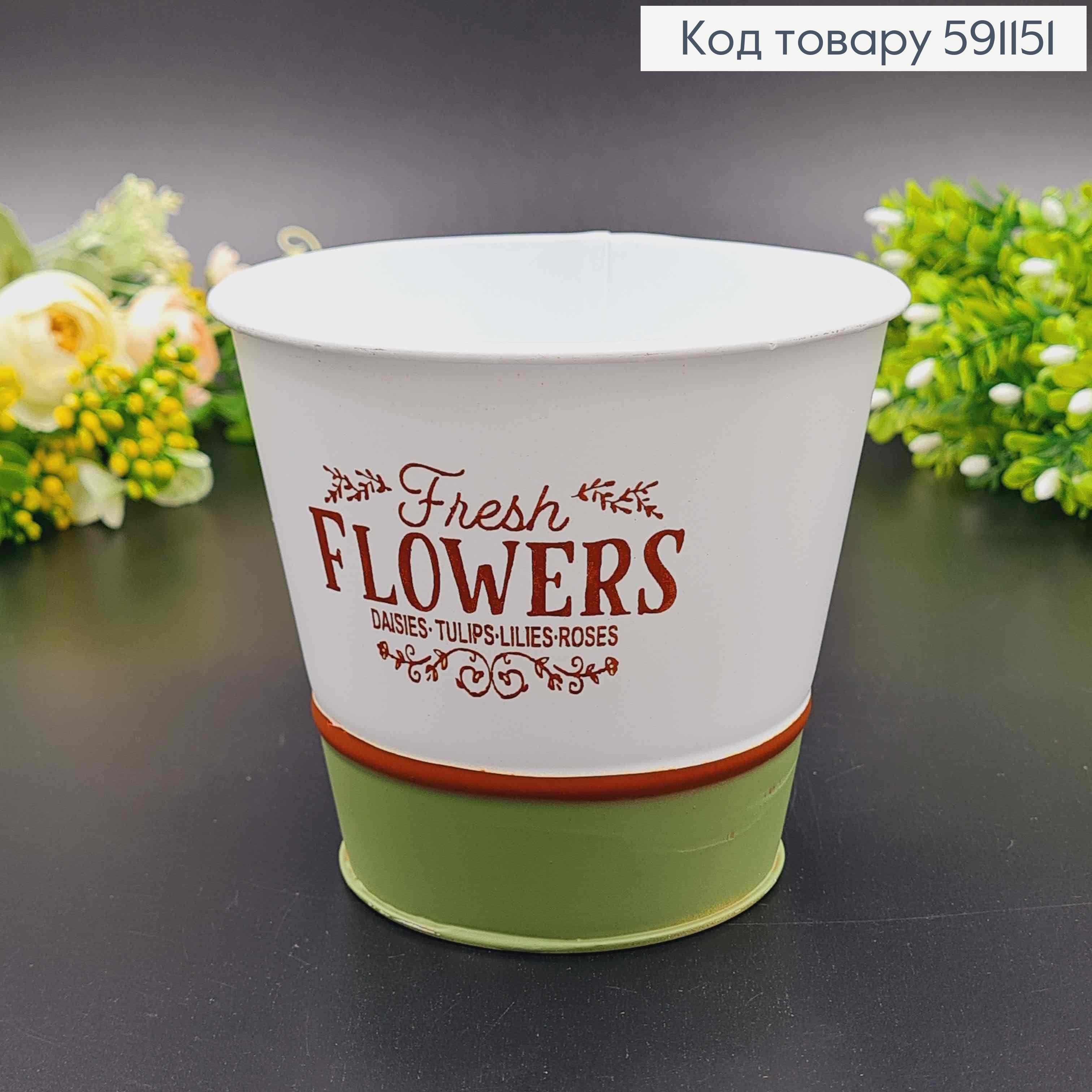 Ведерце-кашпо, металл, салатового цвета, с надписью "FLEURS&FLOWERS", высота 24см, Польша 591364 фото