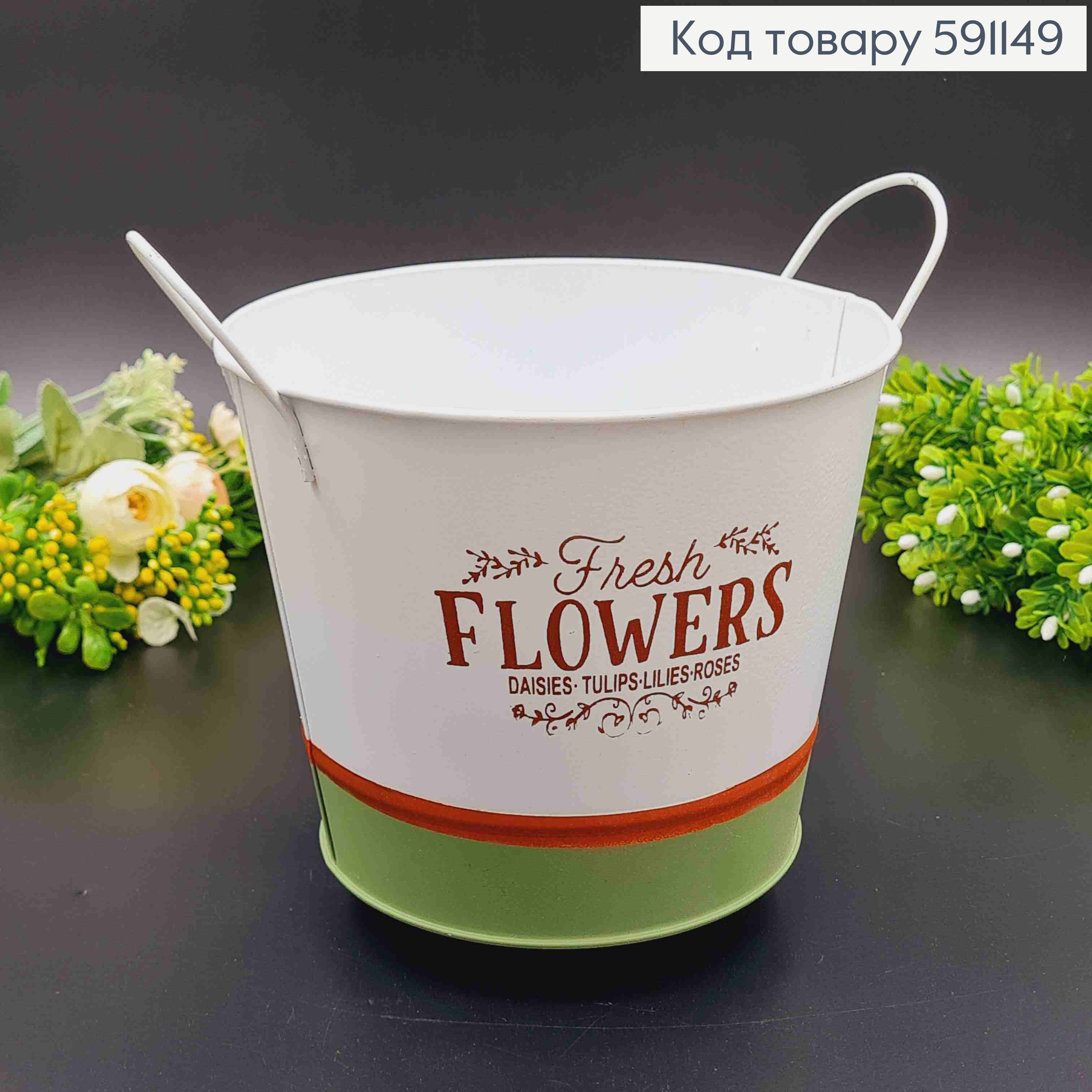 Ведерце-кашпо, металл, салатового цвета, с надписью "FLEURS&FLOWERS", высота 24см, Польша 591364 фото