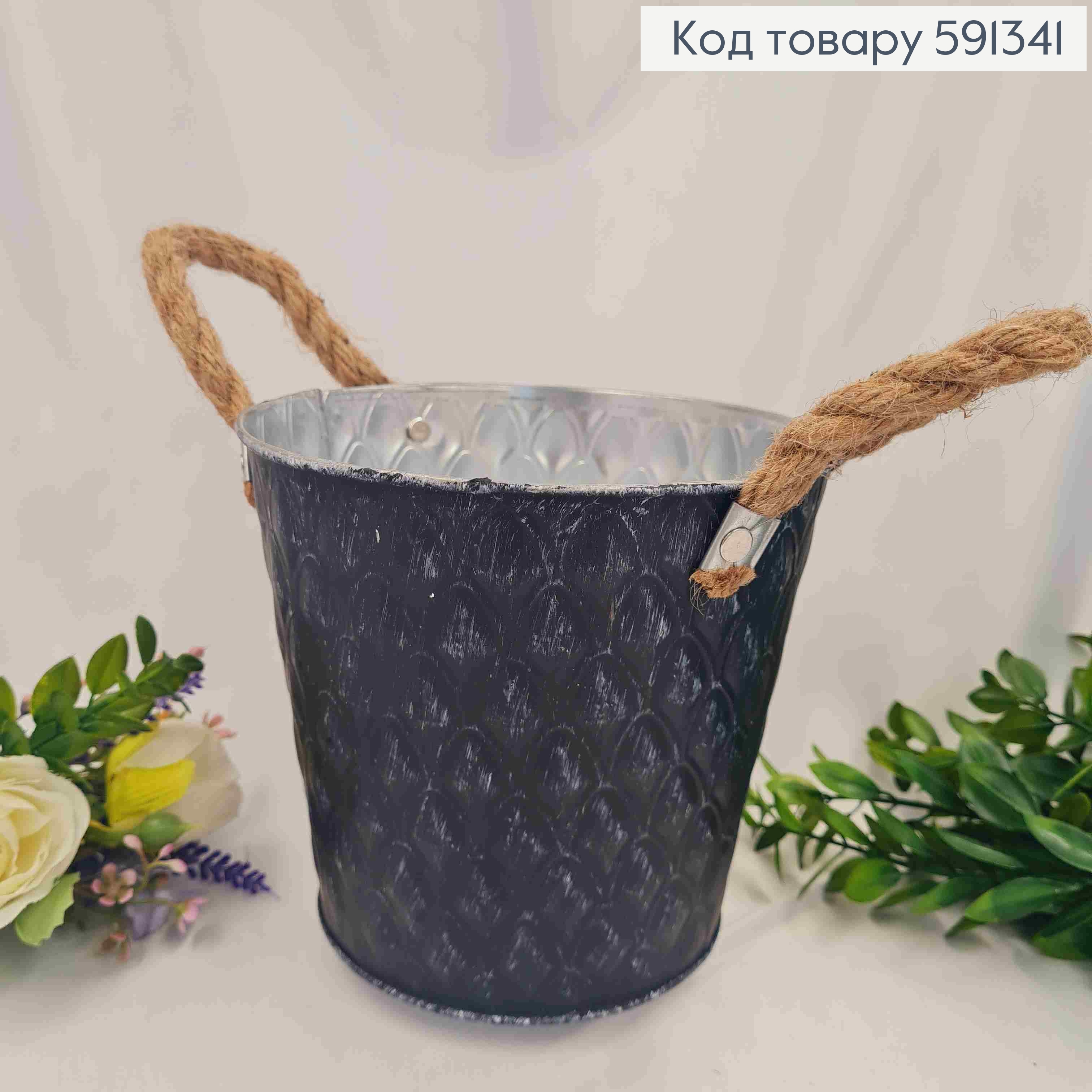 Ведерко-кашпо, металл, тиснение "Луска", Черного цвета, высота 14 см, Польша