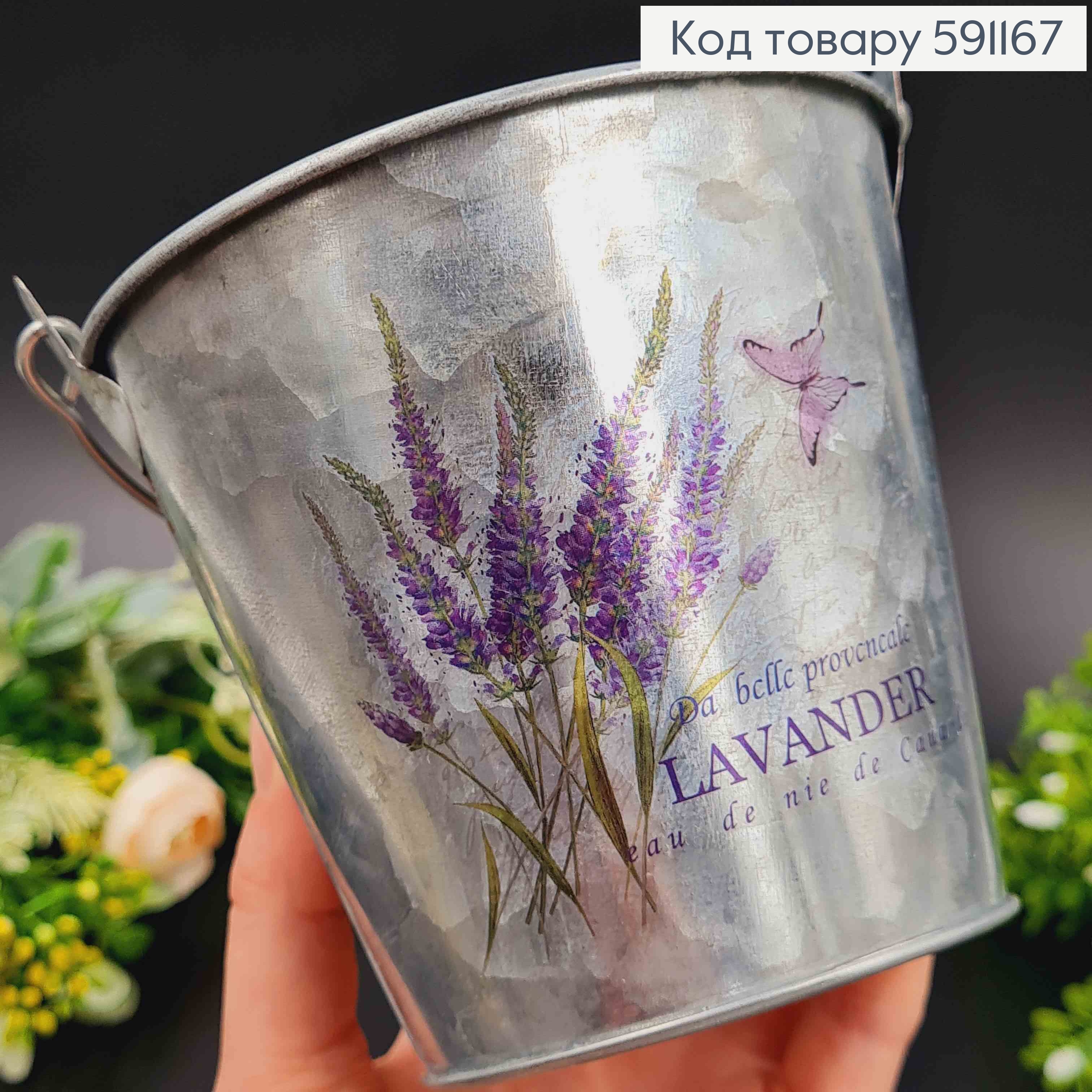 Ведерко-кашпо, металл, с лавандой и бабочкой, высота 10 см, Польша