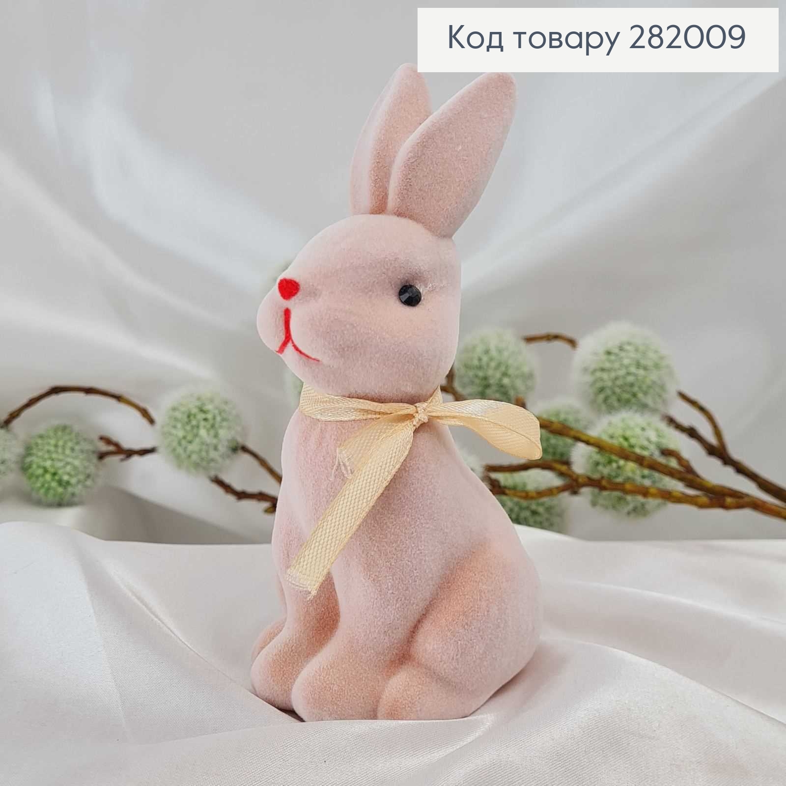 Пасхальная фигурка "ЗАЯЦ с ЯИЧКОМ", (пластик, бархат), ПУДРОВОГО цвета, 7*5,5см 282182 фото