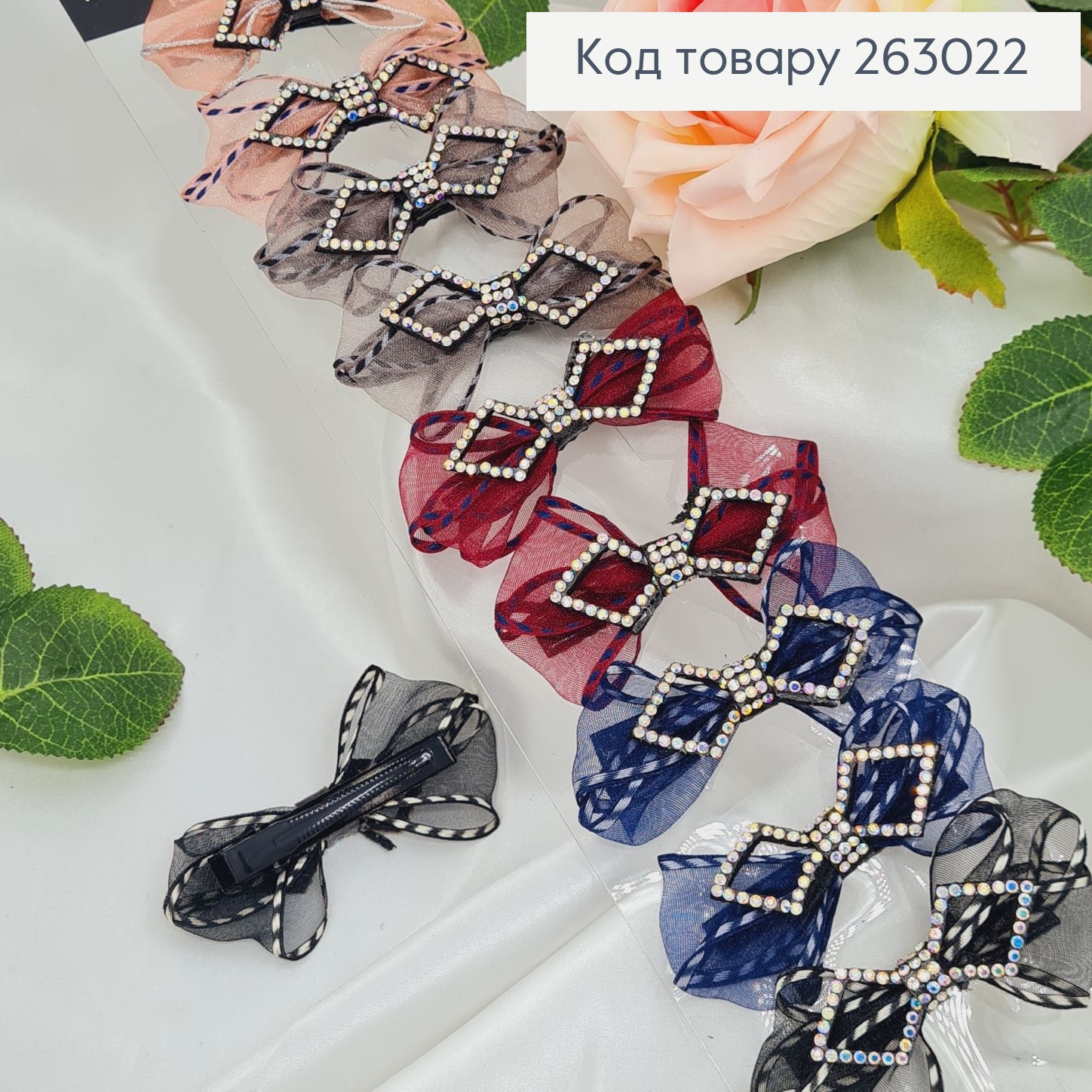 Заколка на зажимчике "Бантик" с блестящими и камешками Хамелеон в ассорт., Серебряного цвета, 5,5см. 233150 фото