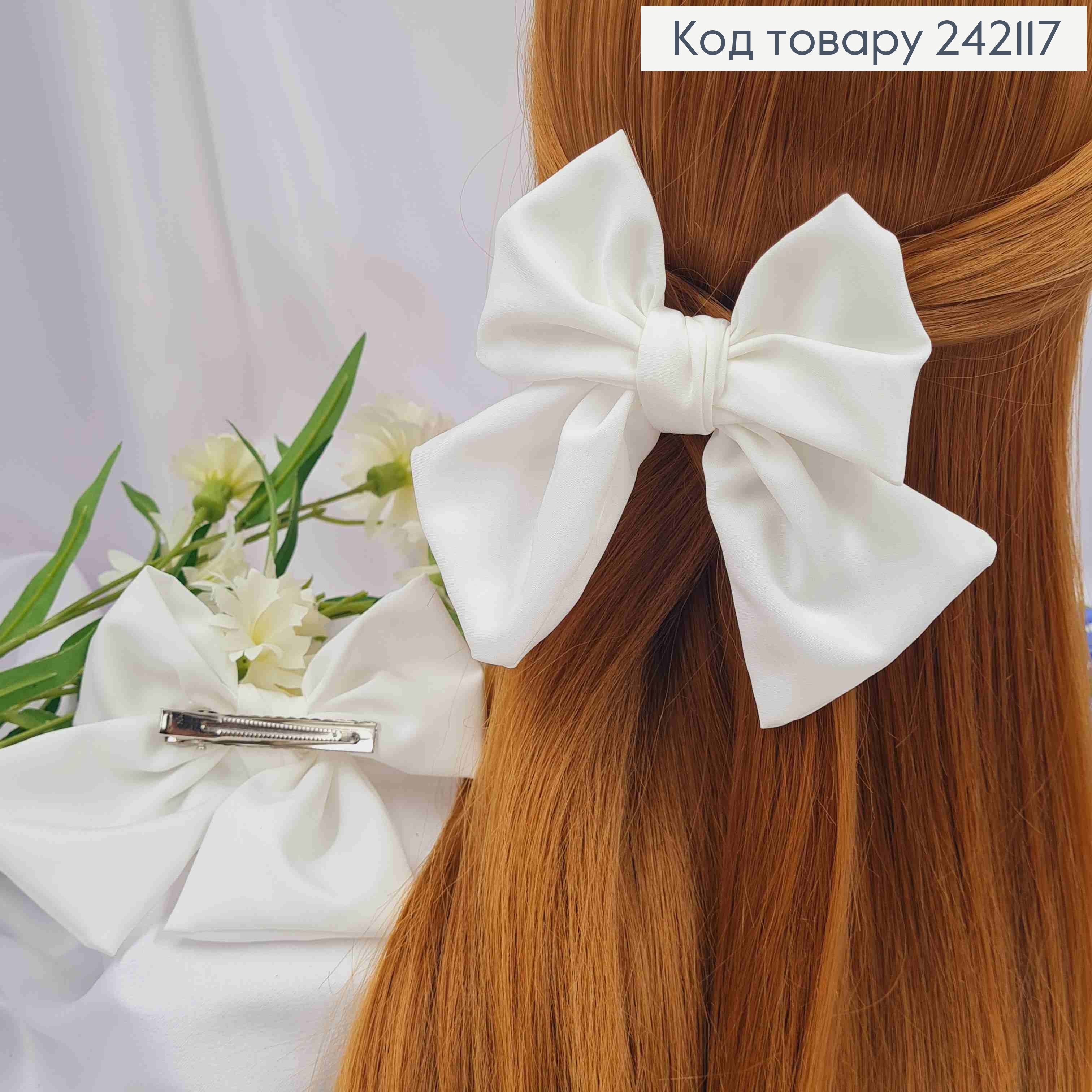 Бант БЕЛОГО цвета, на заколке 5,5см, ткань кружево+атлас, размер 15*25см, Украина. 276158 фото