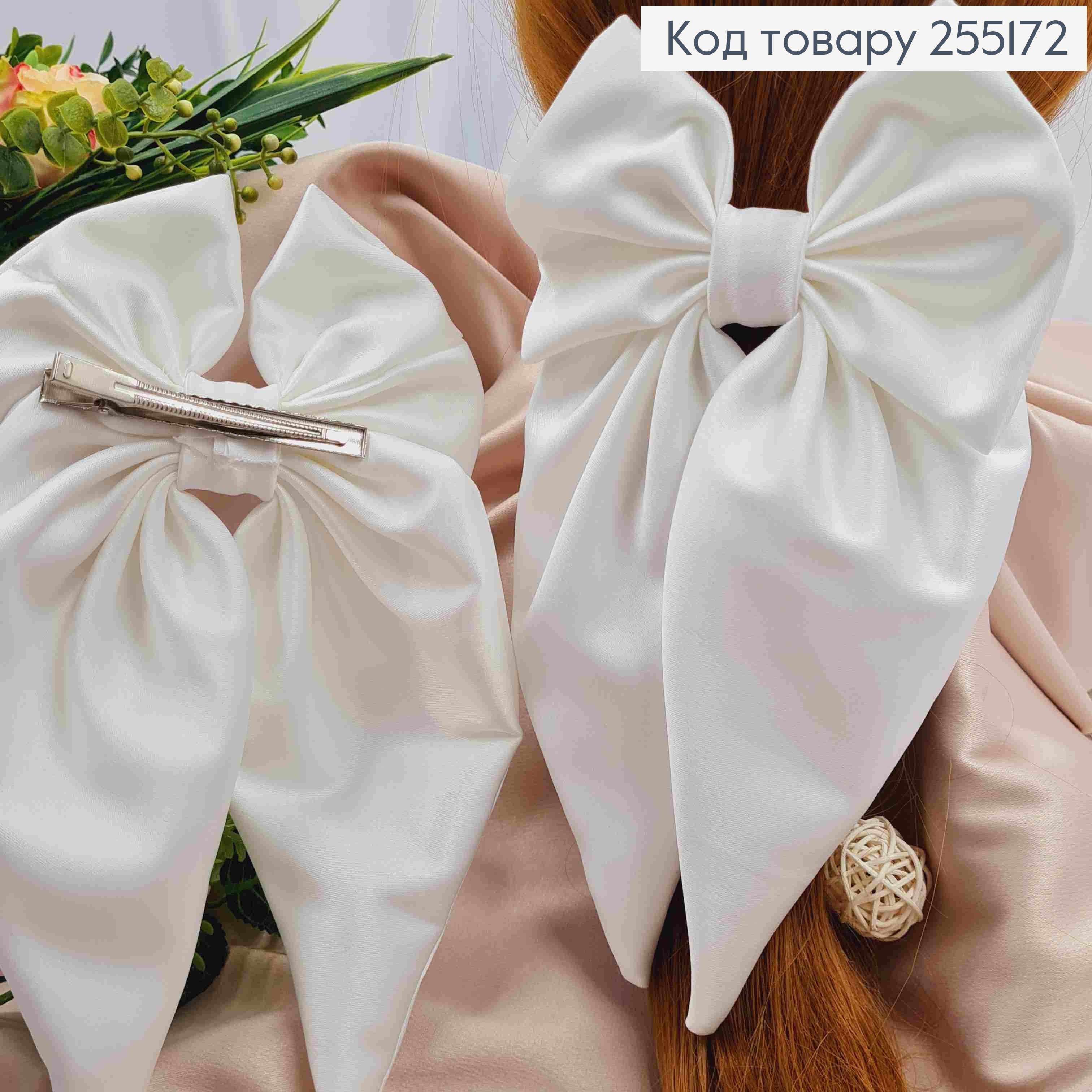 Бант БЕЛОГО цвета, на заколке 5,5см, ткань кружево+атлас, размер 15*25см, Украина. 276158 фото