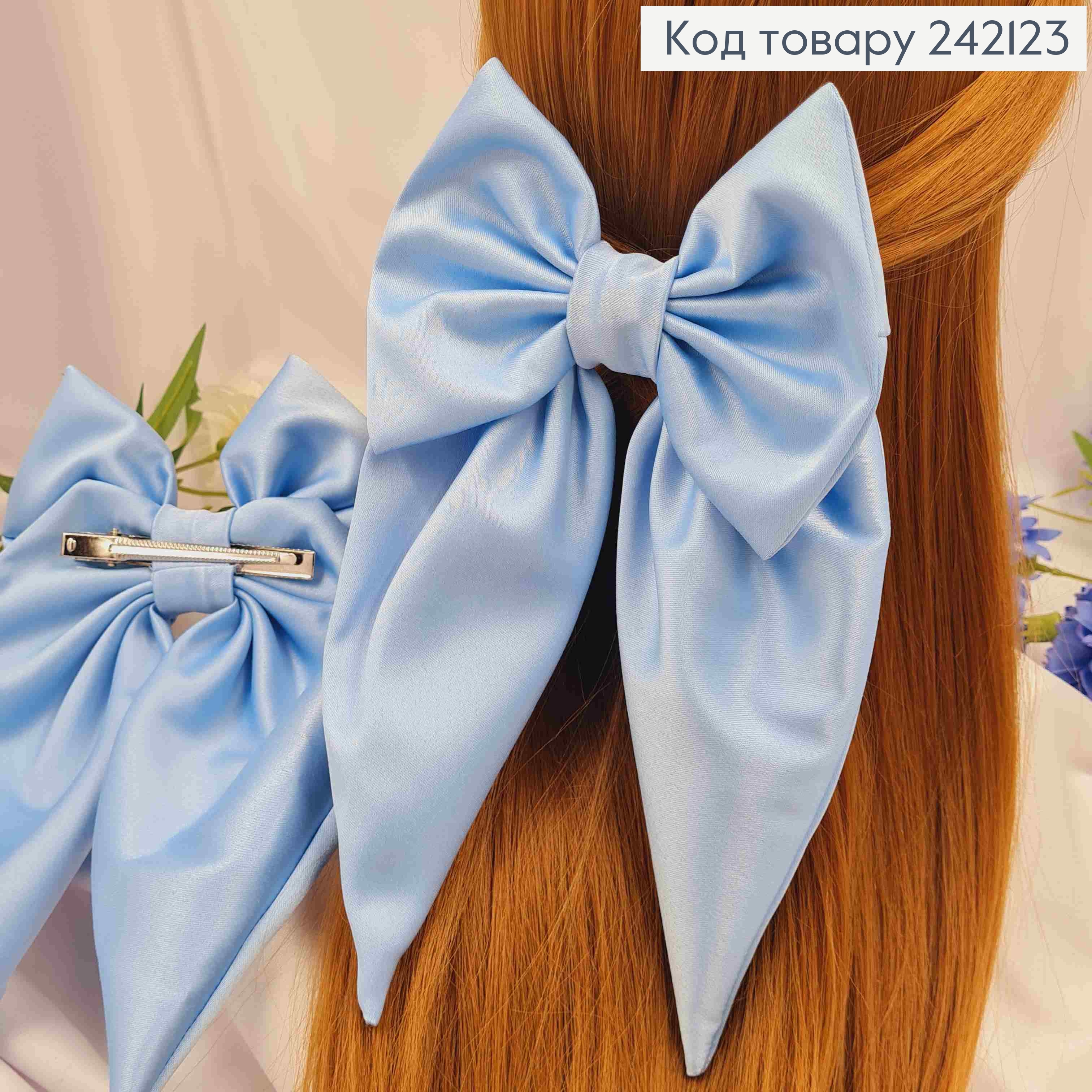 Заколка (7,5см) БАНТ ГОЛУБОГО цвета, ткань плотный атлас, размер 13*22см, Украина