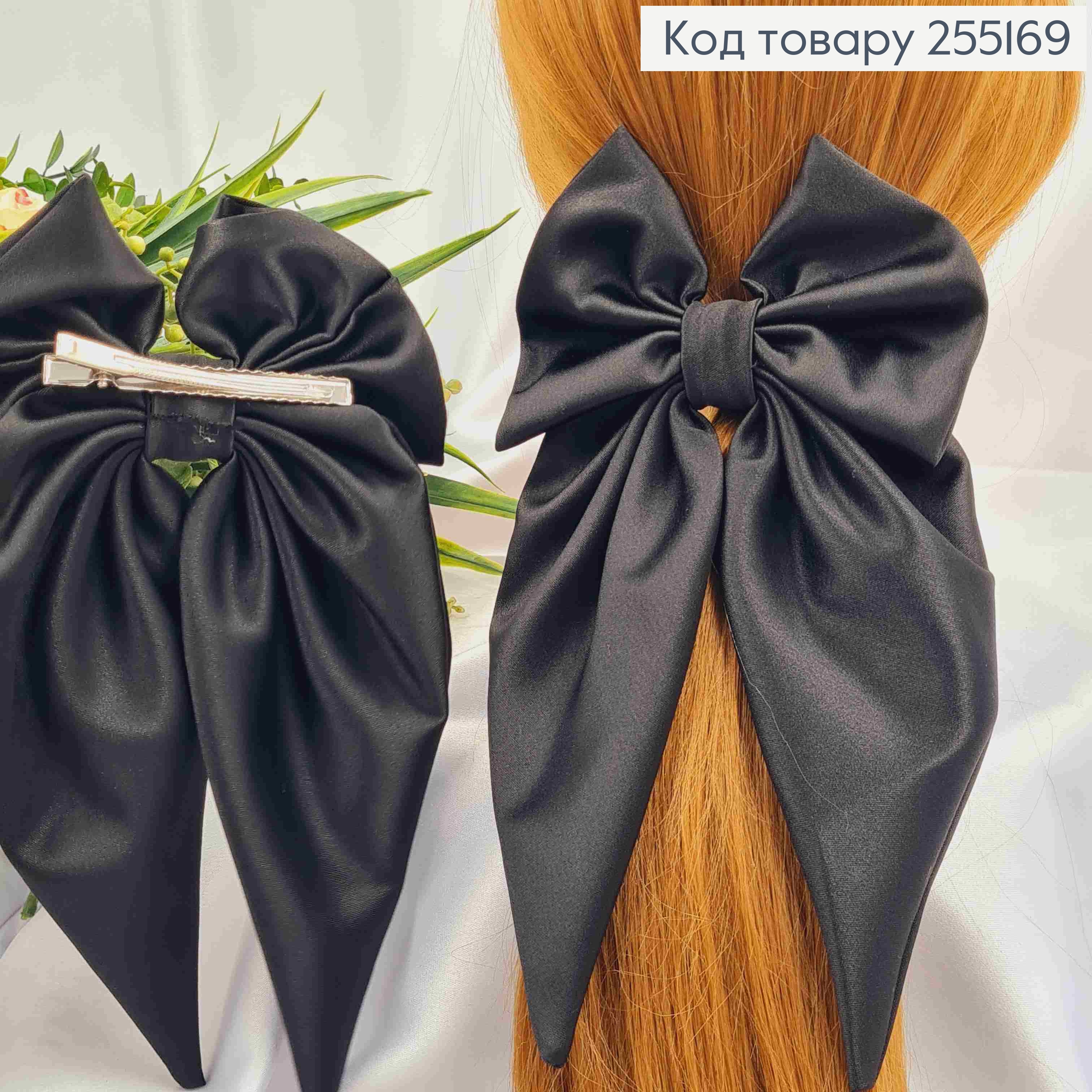 Заколка (7,5см) БАНТ ЧЕРНОГО цвета, ткань плотный атлас, размер 14,5*25см, Украина.