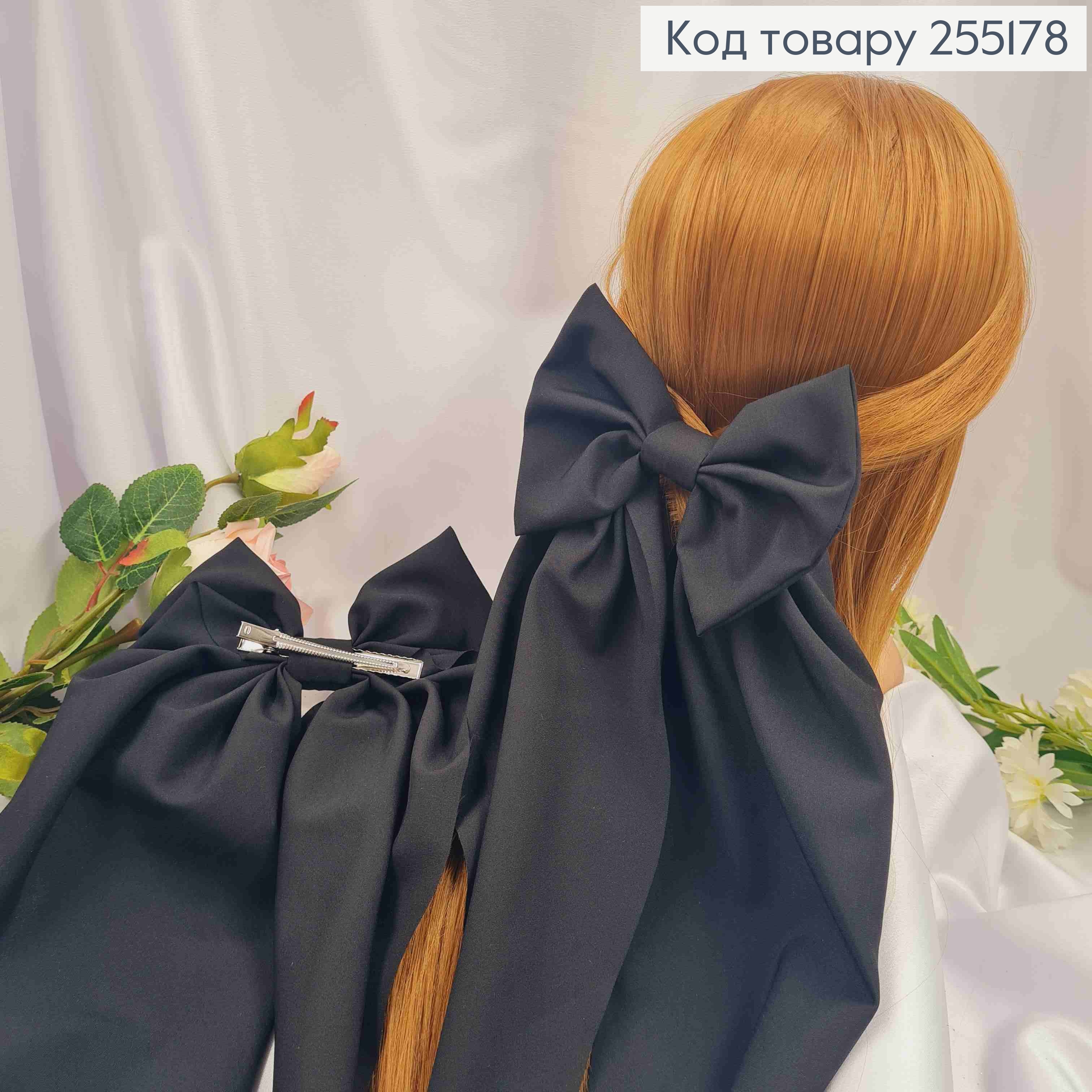 Заколка (7,5см) БАНТ ЧЕРНОГО цвета, ткань стрейч котон, размер 14,5*36см, Украина