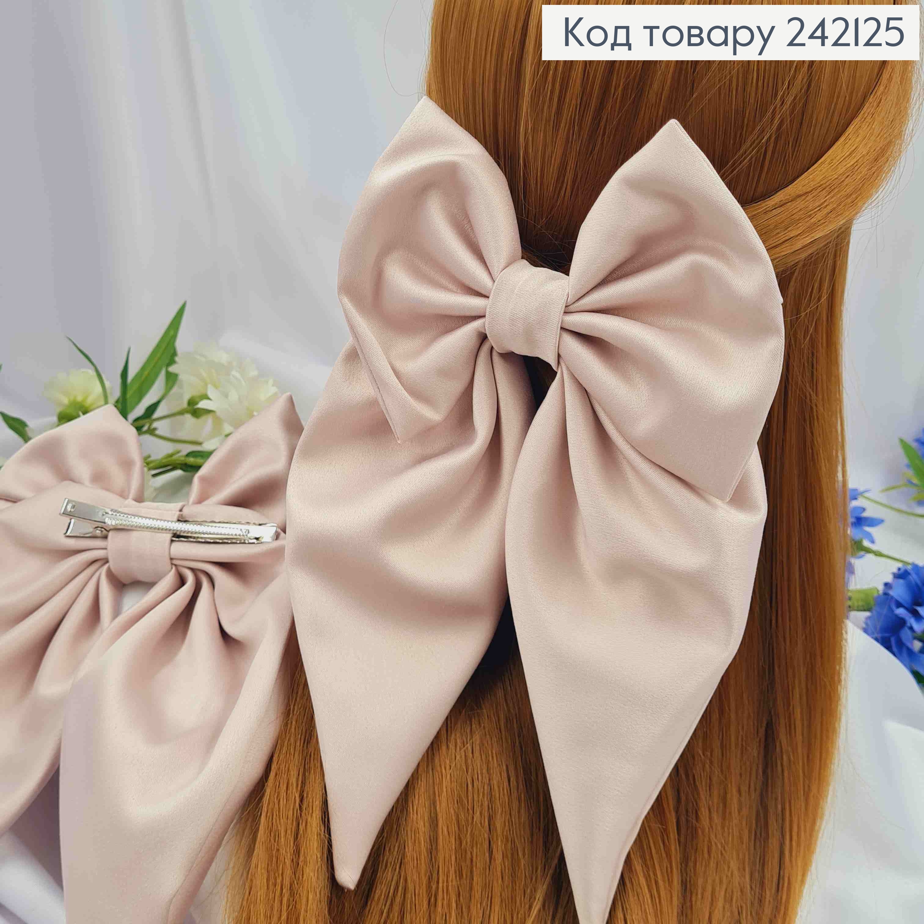 Заколка (7,5см) БАНТ цвета РОЗОВОЙ ПУДРЫ, ткань плотный атлас, размер 13*22см, Украина