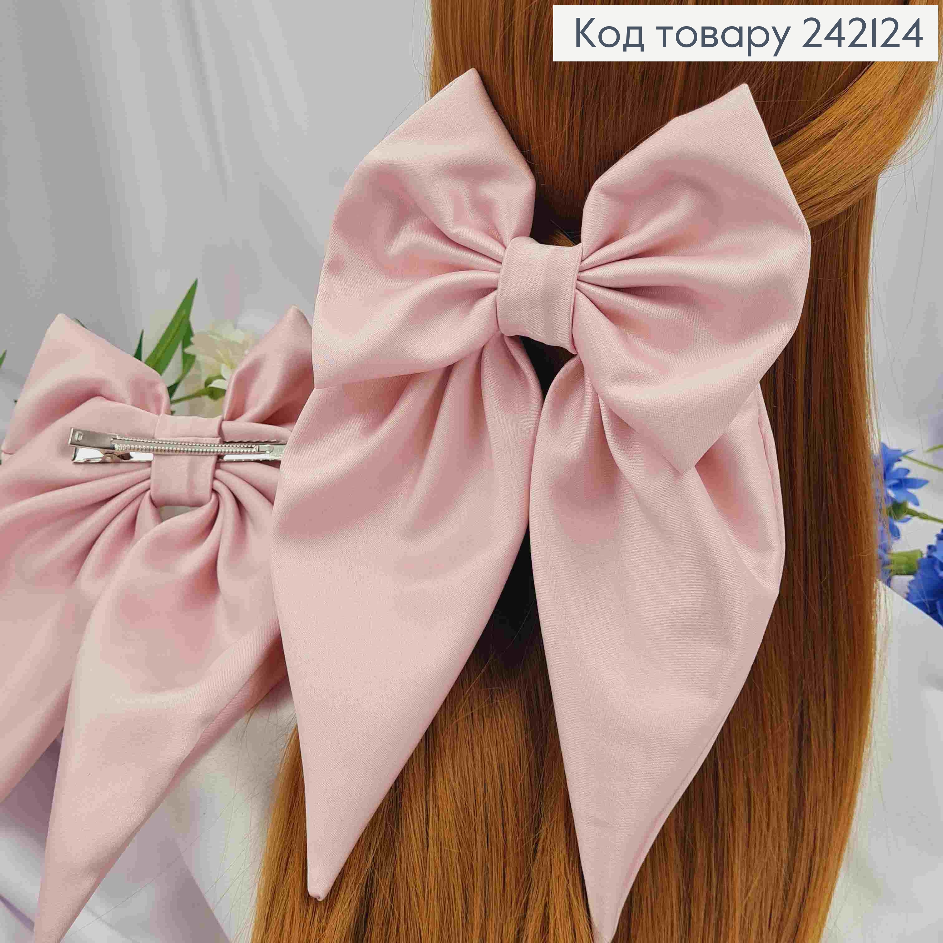 Заколка (7,5см) БАНТ РОЗОВОГО цвета, ткань плотный атлас, размер 13*22см, Украина.