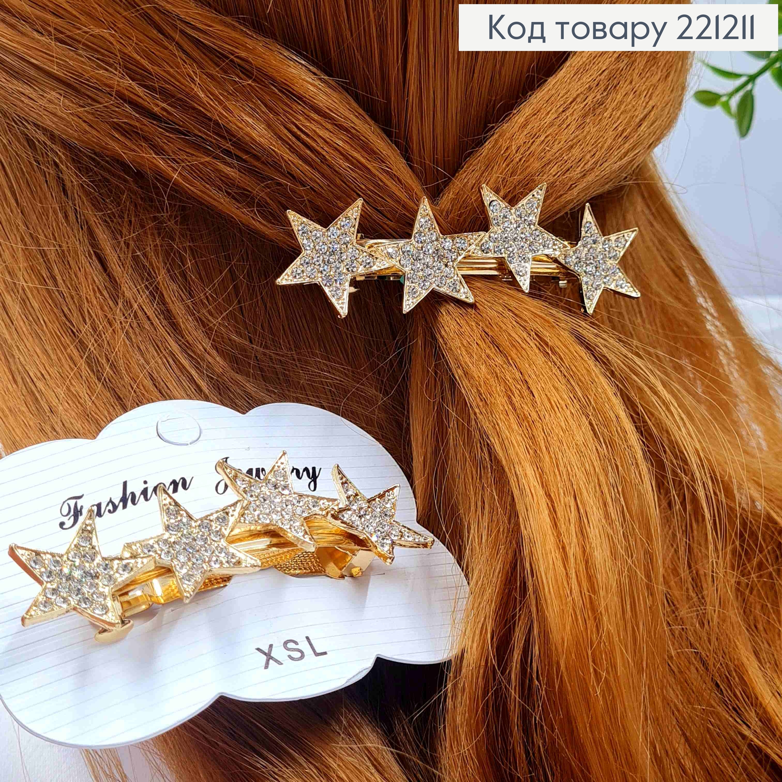 Заколка автомат металлическая "ЗВЕЗДКИ" с Блестящими камешками, 7*2см, Серебряного цвета 221210 фото
