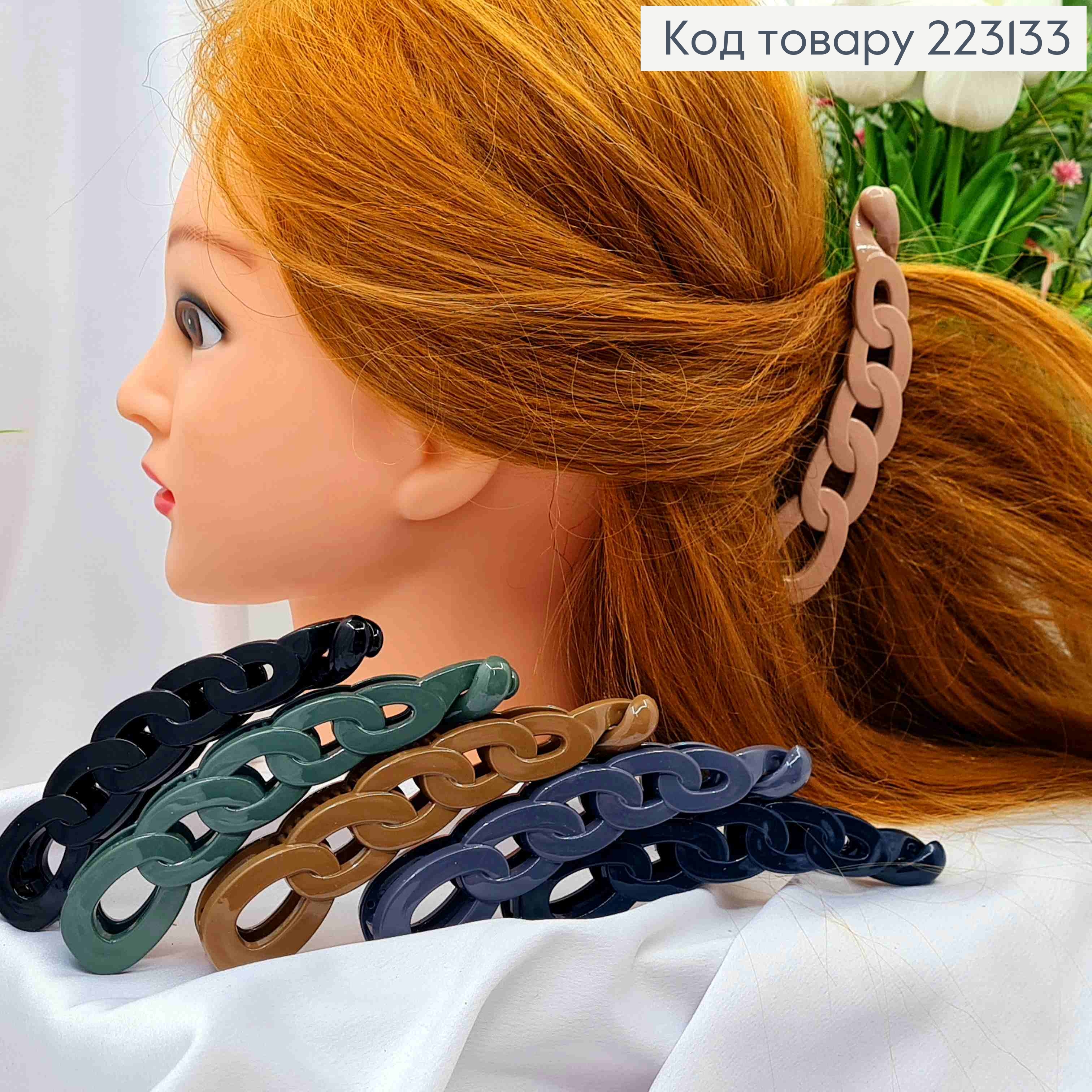 Заколка банан, глянцевая, "Цепочка", Цвета в ассортименте, 12,5см