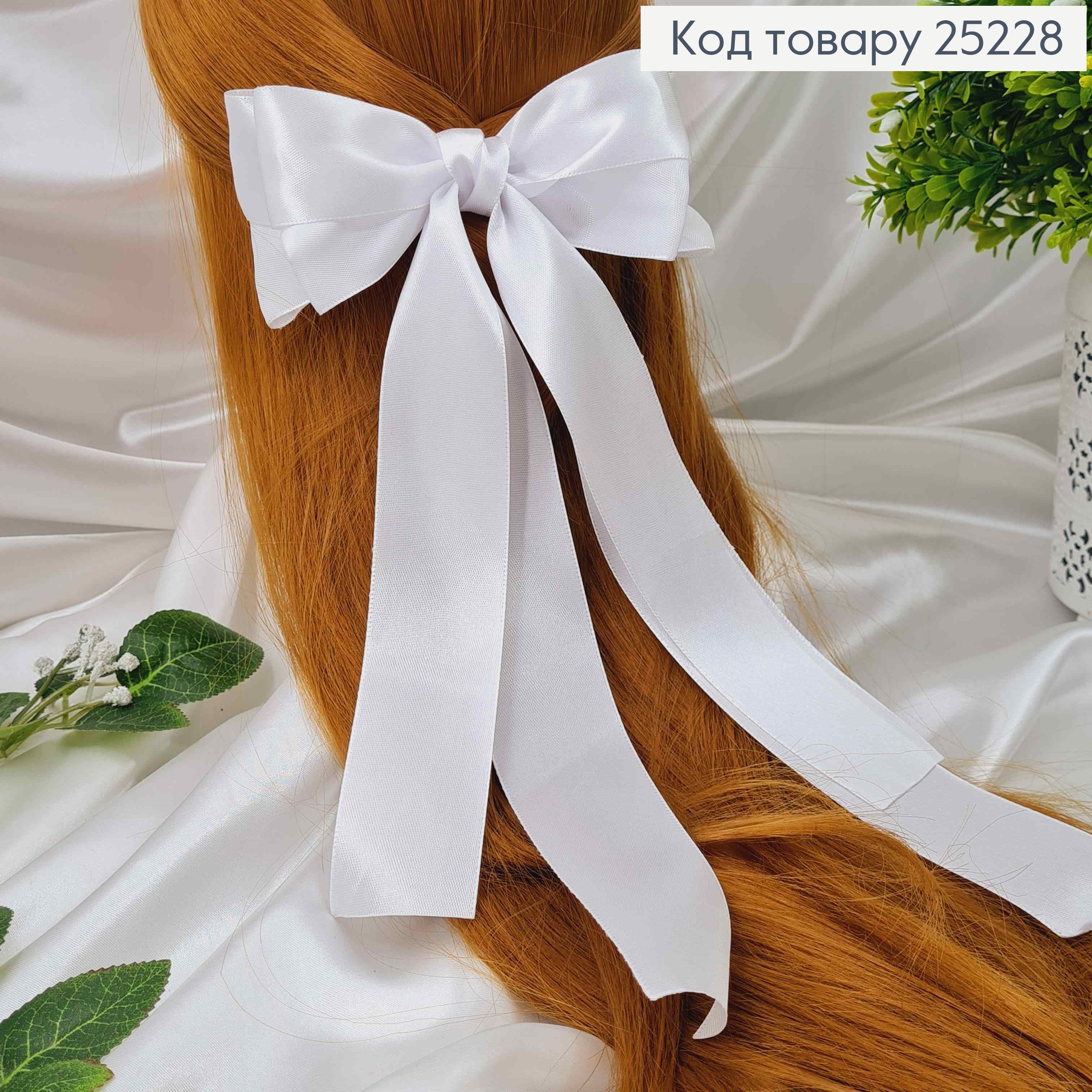 Заколка, Бант атласный, белый, 16*27см. Ручная работа, Украина