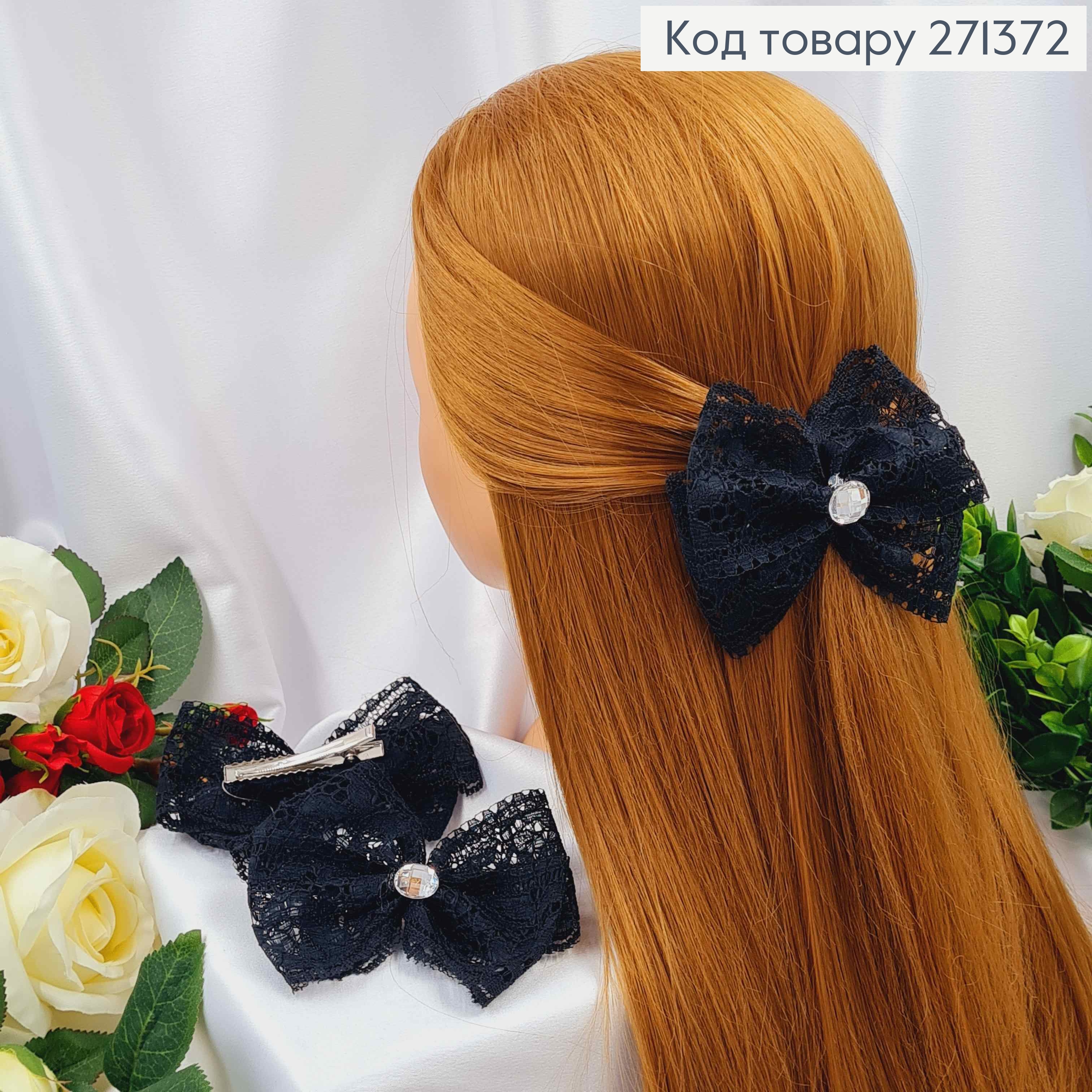 Заколка БАНТ черный, кружево с камешком, 11*8см, УКРАИНА