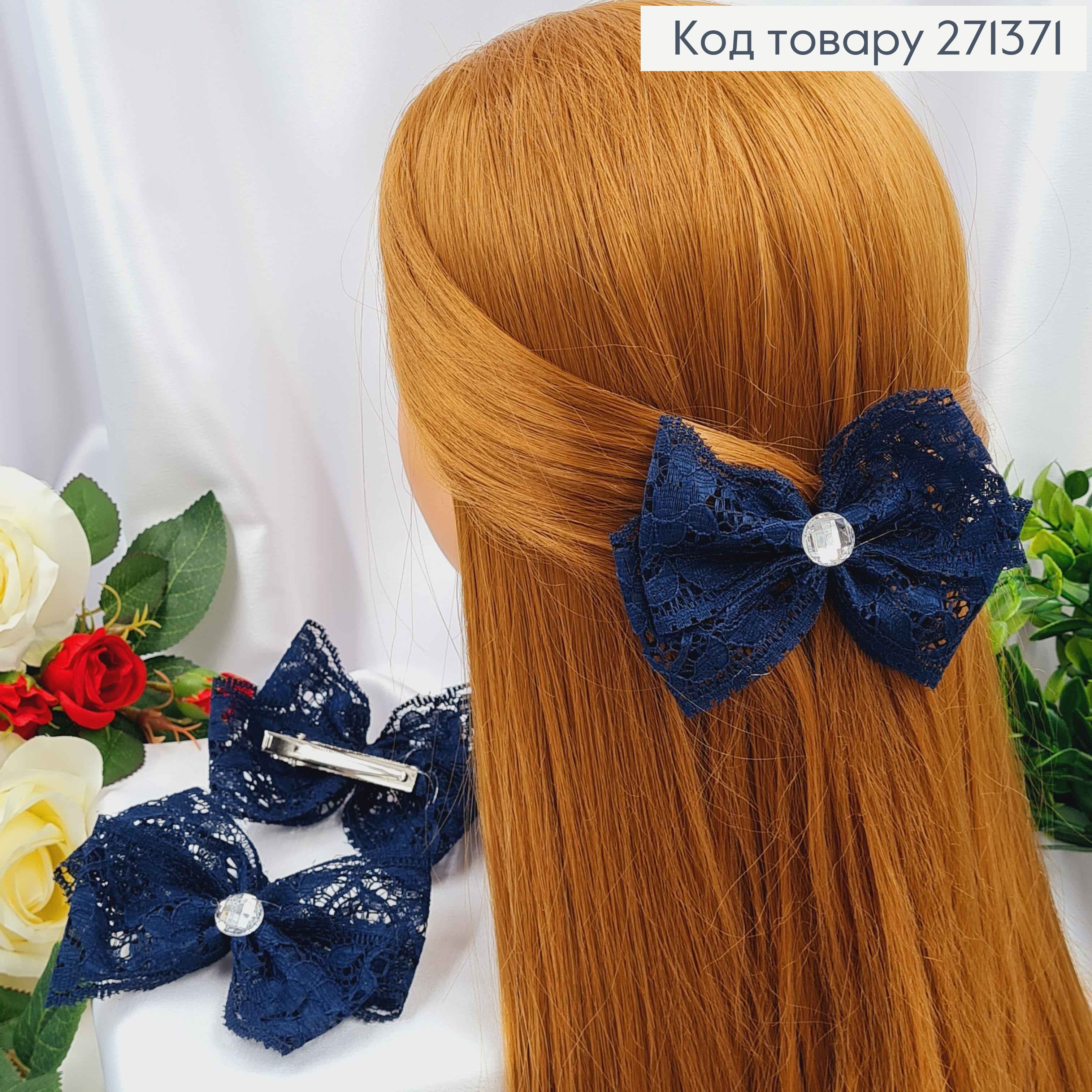 Заколка БАНТ темно синий , кружево с камешком, 11*8см, УКРАИНА