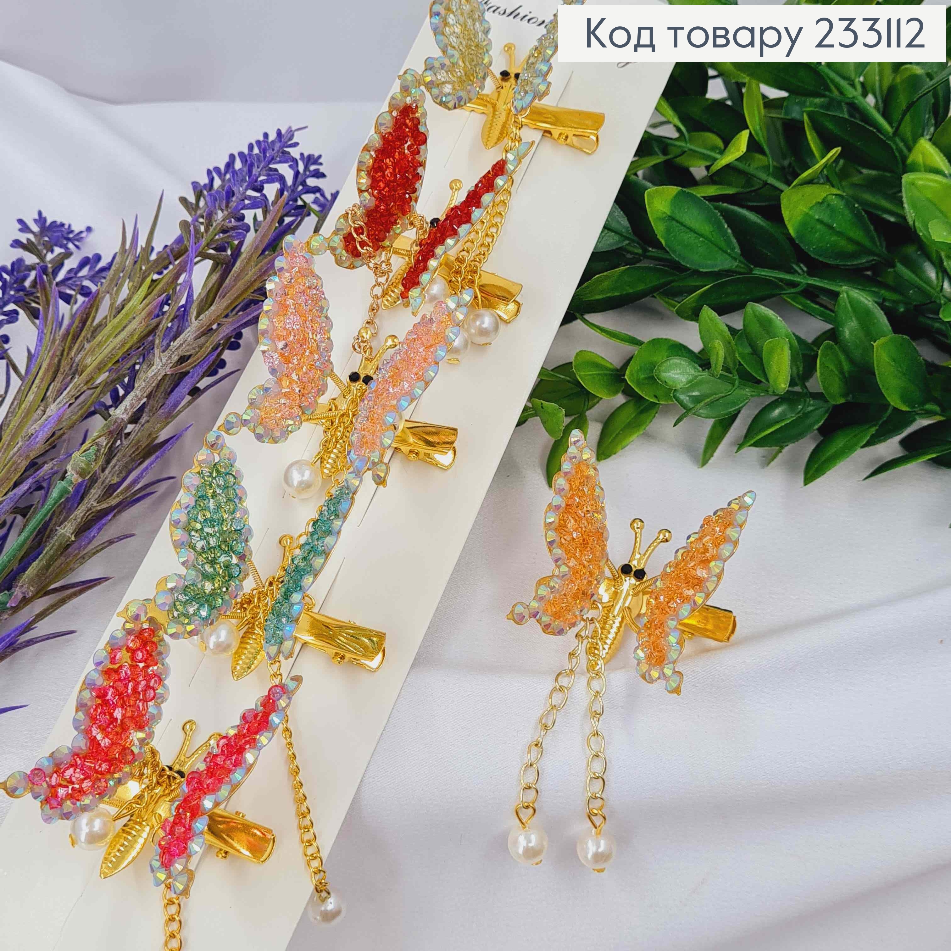 Заколка на зажимчике "Бантик" с блестящими и камешками Хамелеон в ассорт., Золотого цвета, 5,5см. 233151 фото