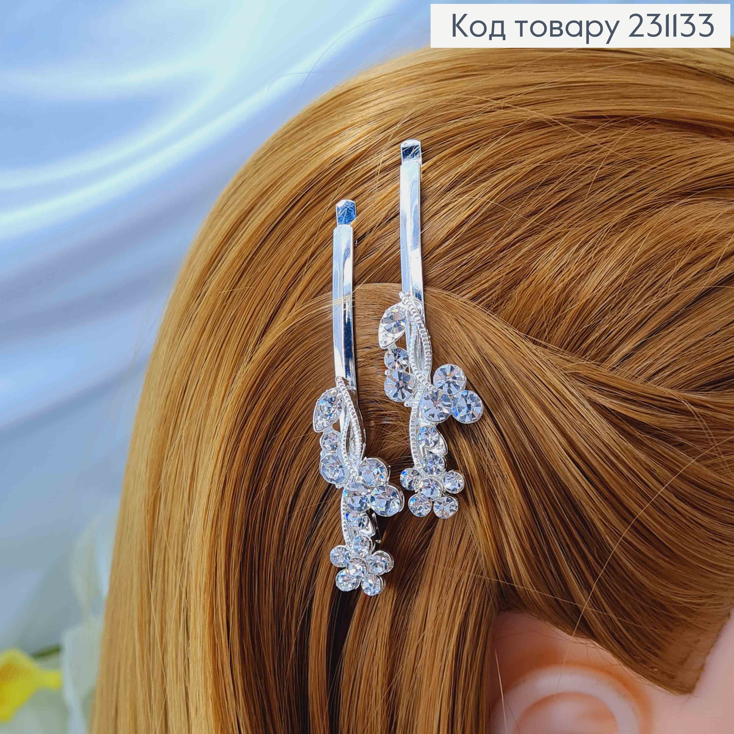 Заколка Невидимка (цена за 2шт) 6см серебряного цвета с камешками