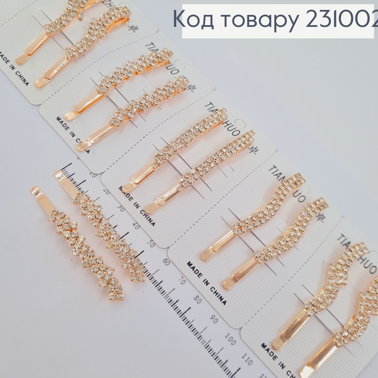 Набор невидимок (2шт), с квадратным блестящим камнем, 5см, золотого цвета. 231193 фото