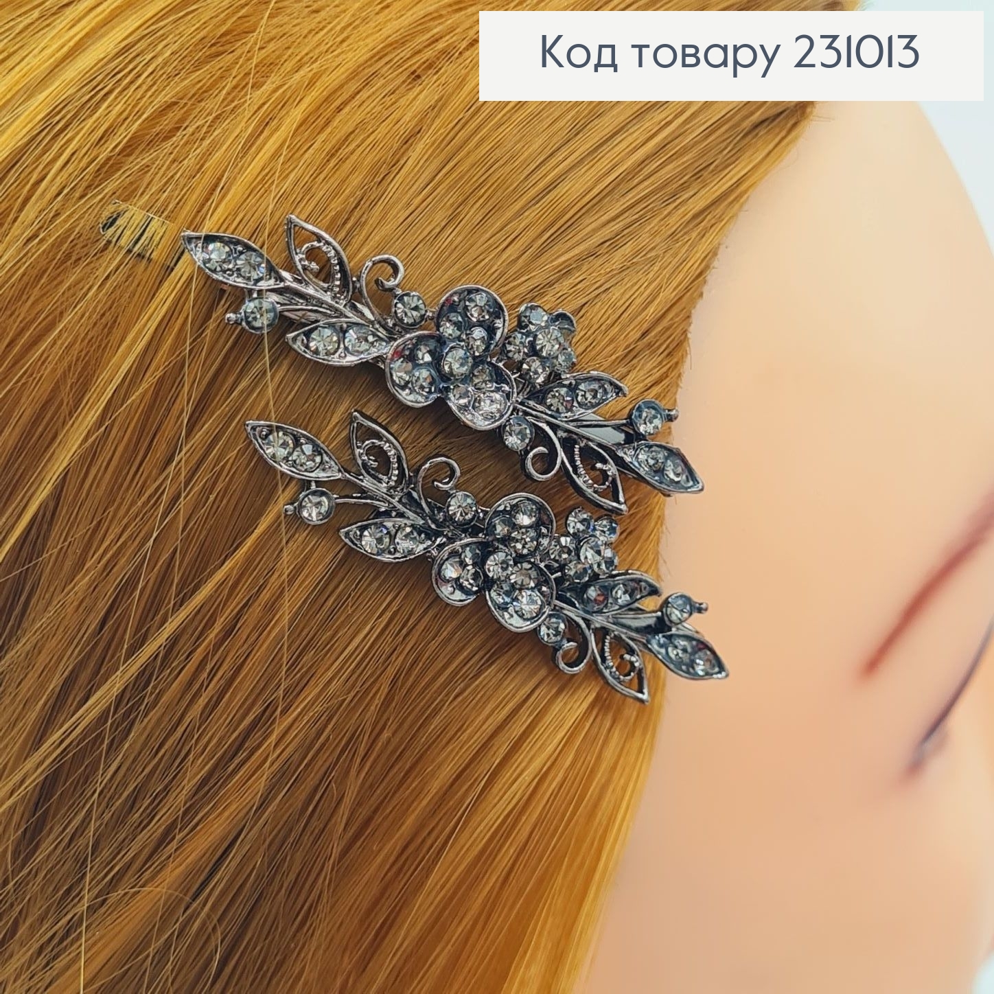 Заколка невидимка металл 6 см черная с камнями Цветочек 2 шт / уп цена за уп.