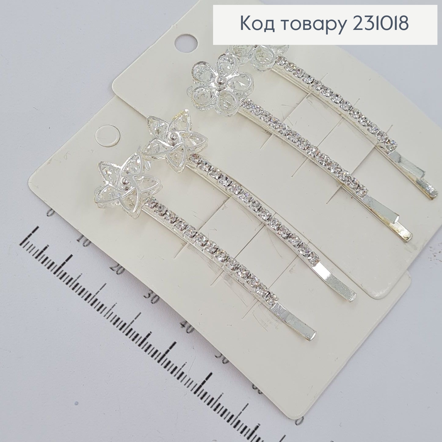 Заколка невидимка металл 6,5см Серебряная цветочек 2 шт / уп цена за уп.
