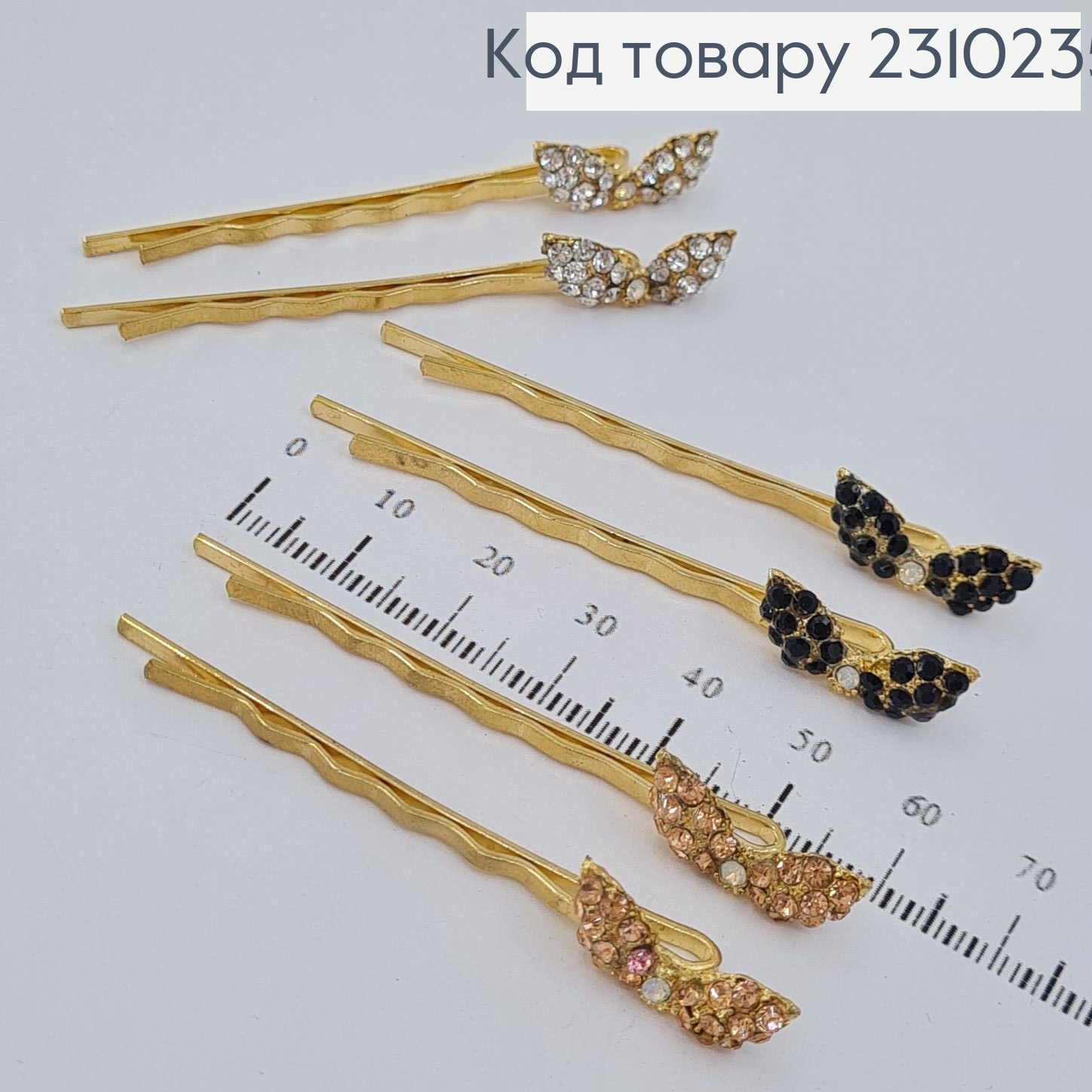 Заколка невидимка металл Бантик с камнями 6 см в ассорт. 2 шт / уп цена за уп.
