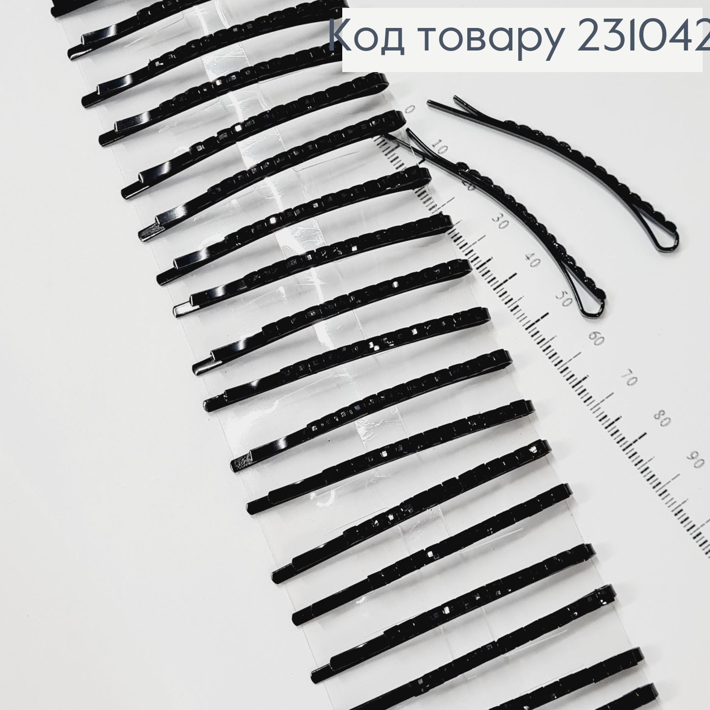 Заколка невидимка металл черная с черными камнями в 6 см 2 шт / уп цена за уп.