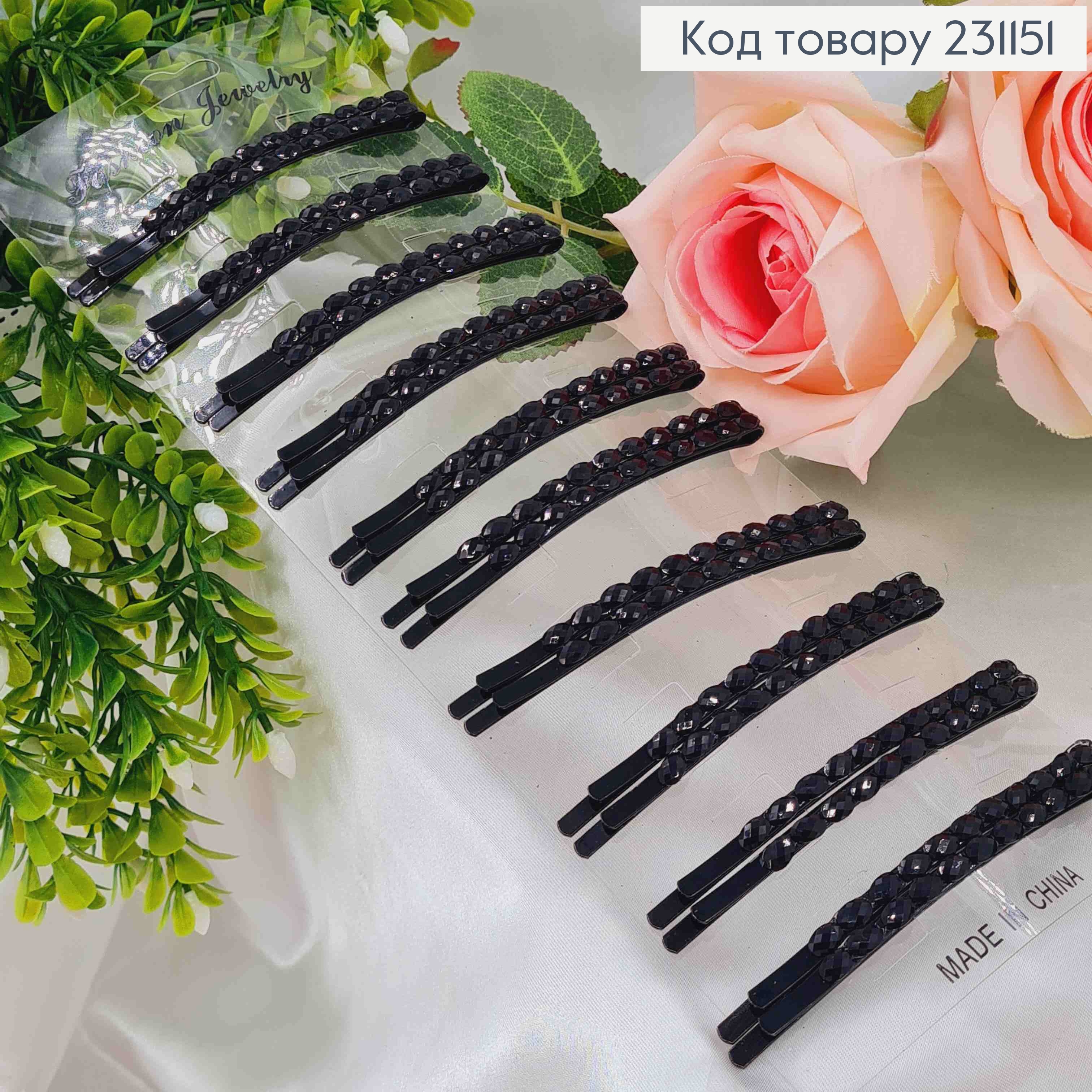Заколка невидимка металл черная с черными камешками в 8,5см 20шт/уп цена за уп.