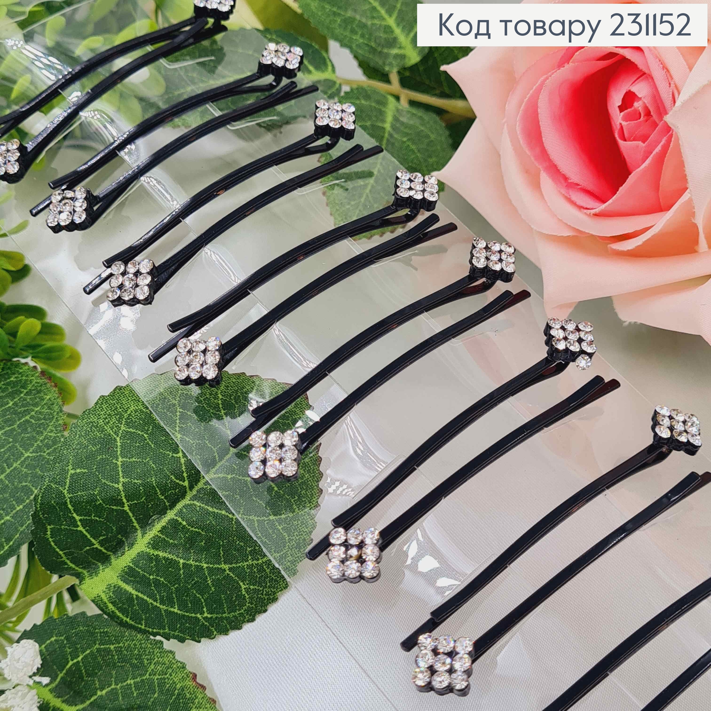 Набор невидимок (2шт), с квадратным блестящим камнем, 5см, серебряного цвета 231196 фото