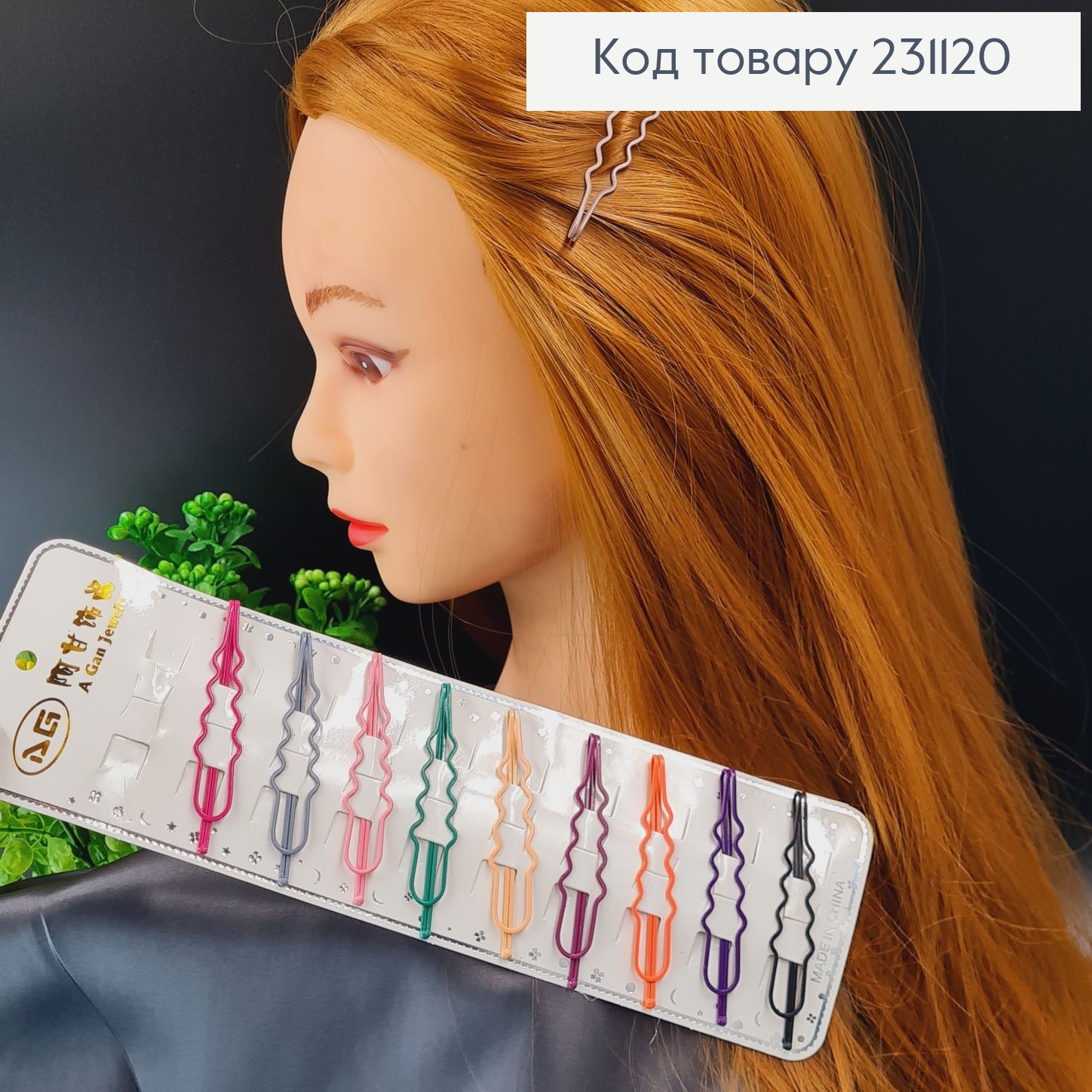 Заколка невидимка металл цветная волна 7см 10 шт/уп