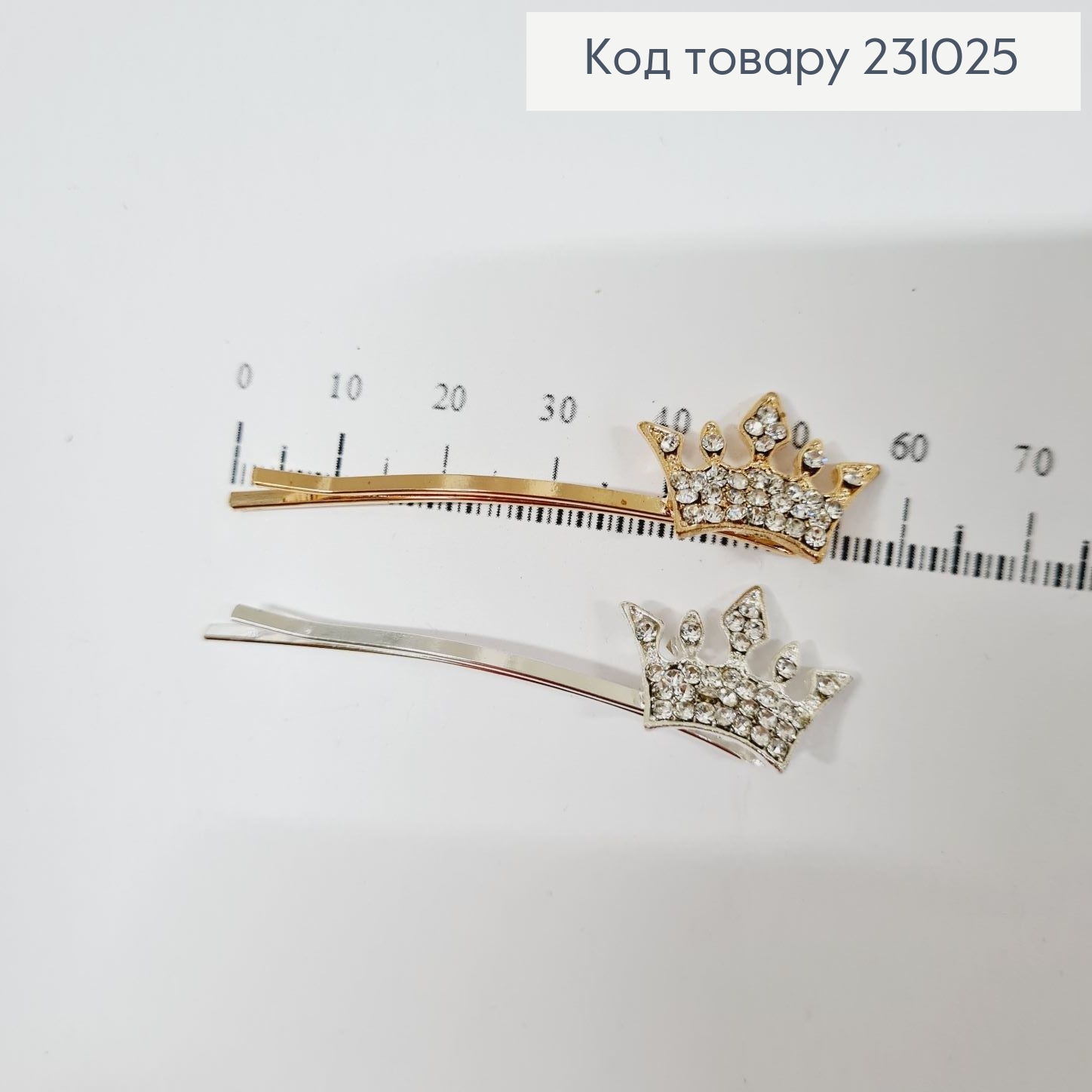 Набор невидимок (2шт), с овальным блестящим камнем, 5см, Золотого цвета 231195 фото
