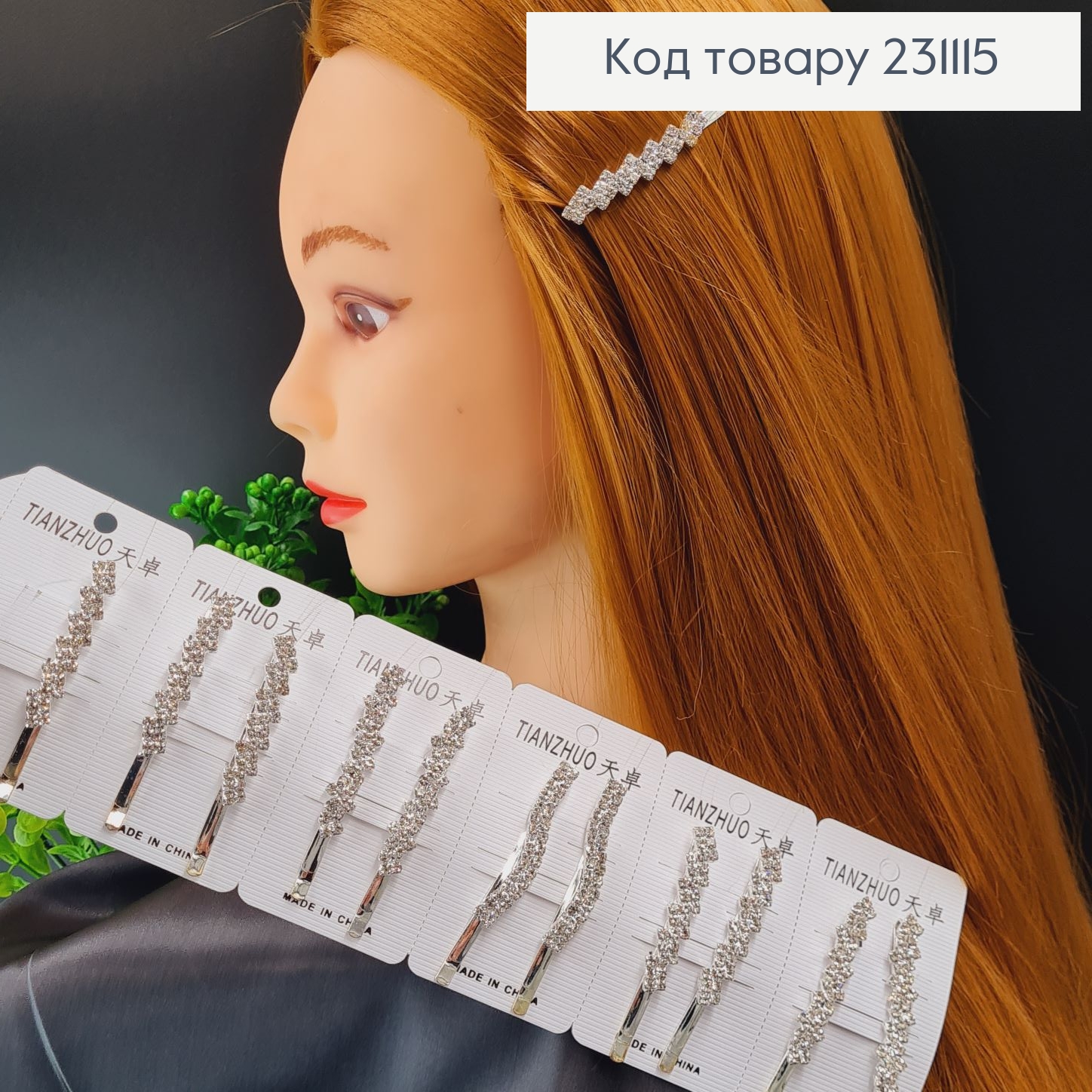 Заколка невидимка металл серебряная с камешками 6,5 см 12 шт/уп