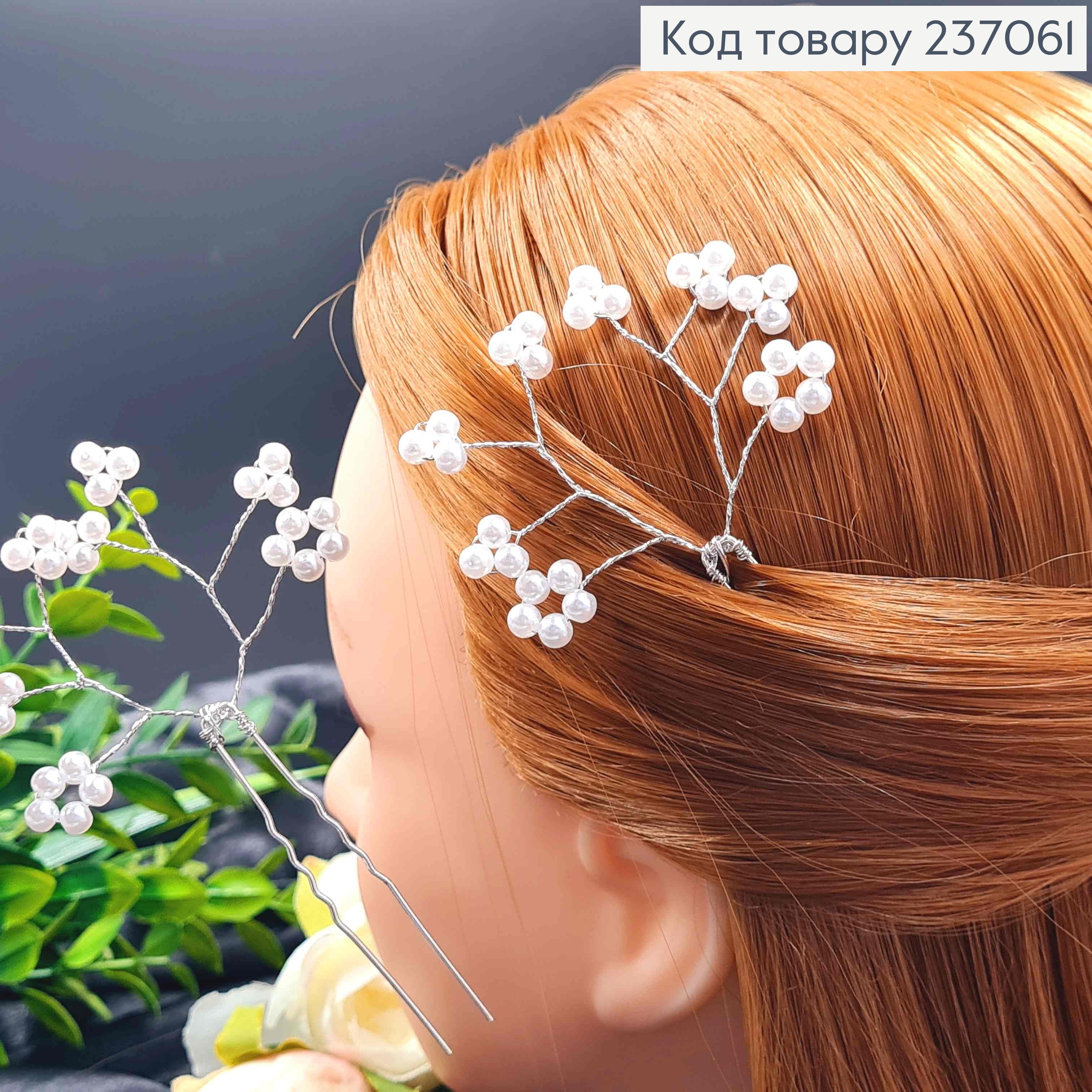 Заколка шпилька-рогач с перламутровыми бусинами, 6+4,5см