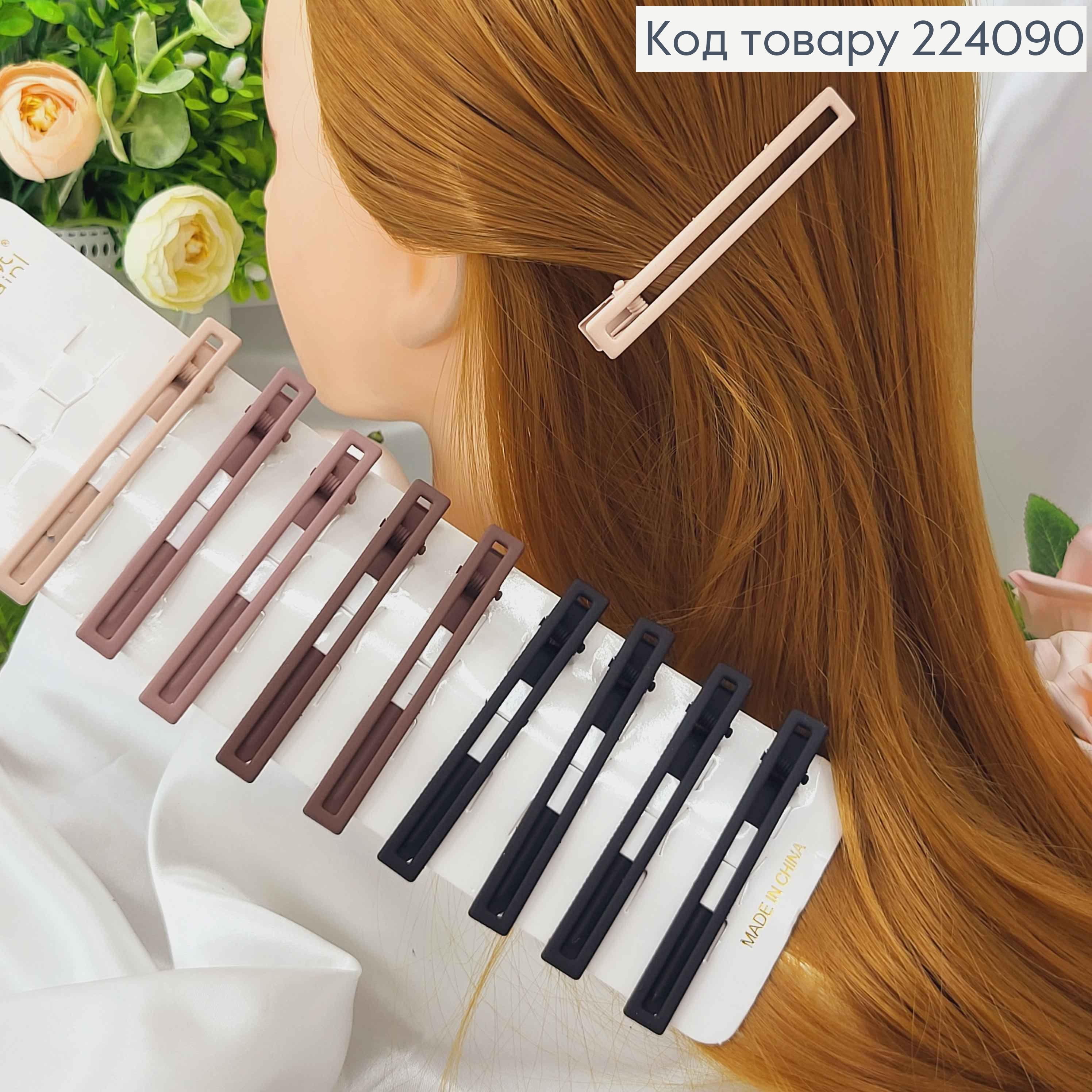 Заколка стрела, Метал "каучук", прямоугольная матовая 8см, цвета в ассорт.