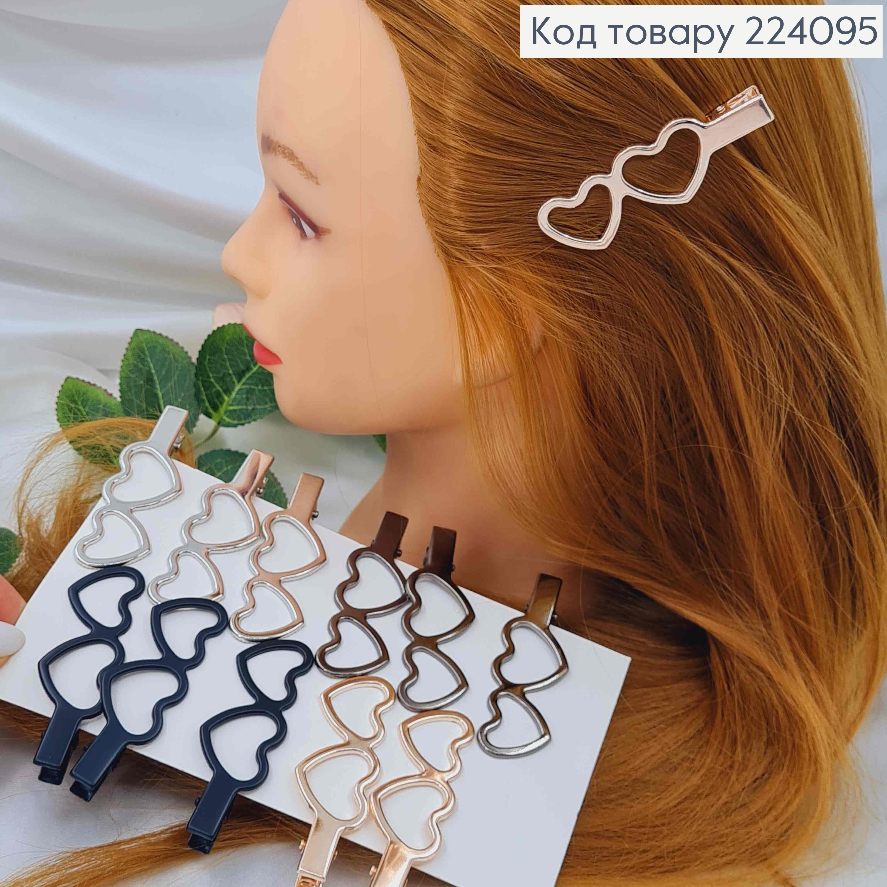 Заколка стрела, Металл, "Два сердечка", 7см, цвета в ассорт.