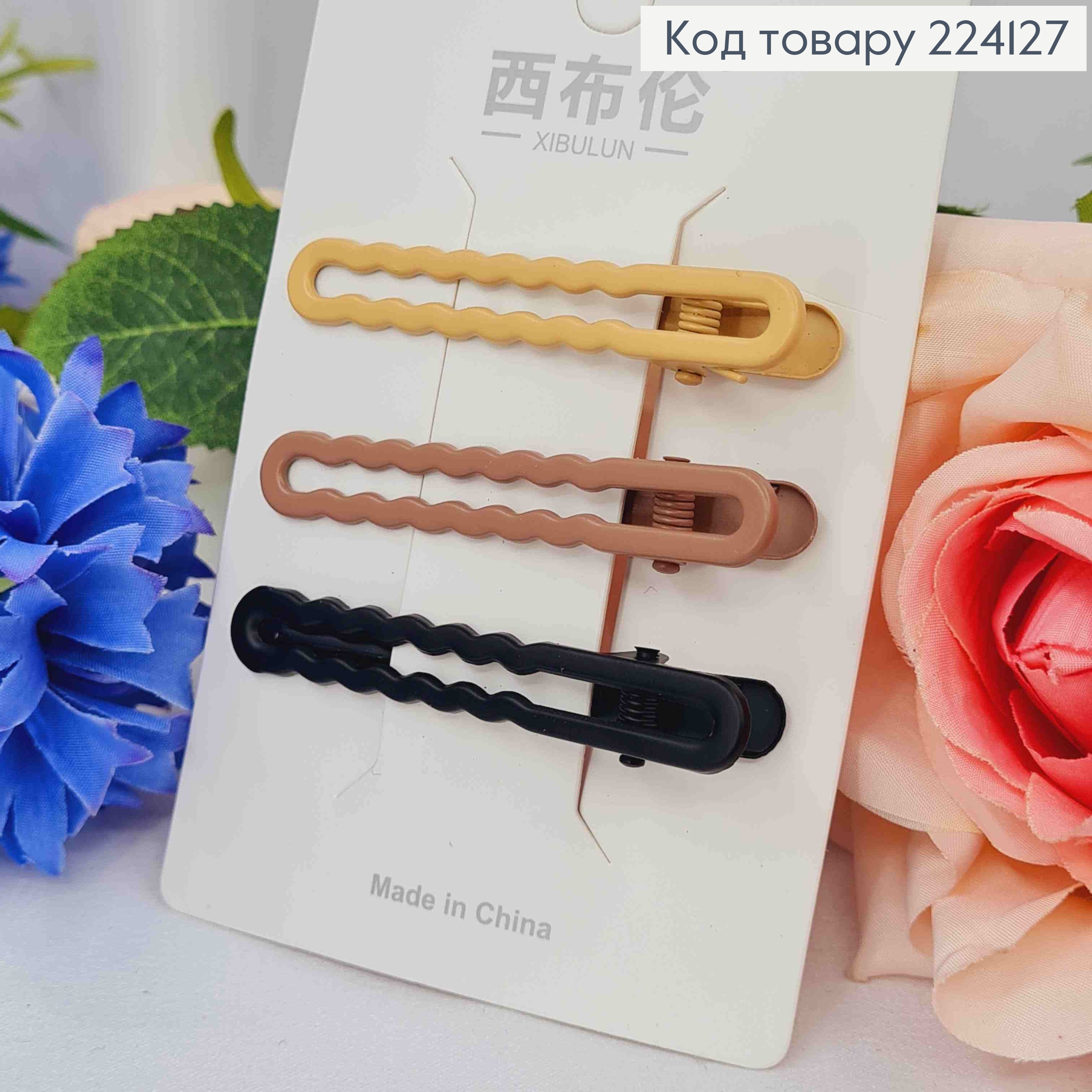 Заколка стрела, металл, Овальная с волнистыми краями, 6см, Черная-Коричневая-Бежева, 3шт/уп