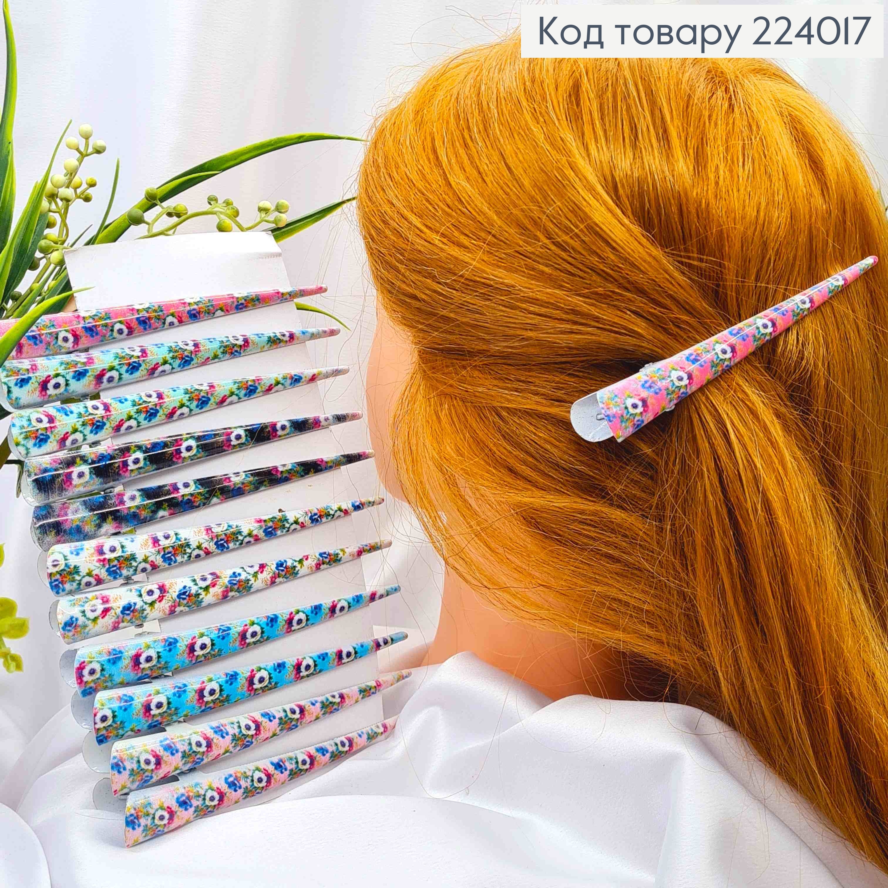 Заколка стрела металл с принтом Цветы, цвета в ассортименте, 12,5см