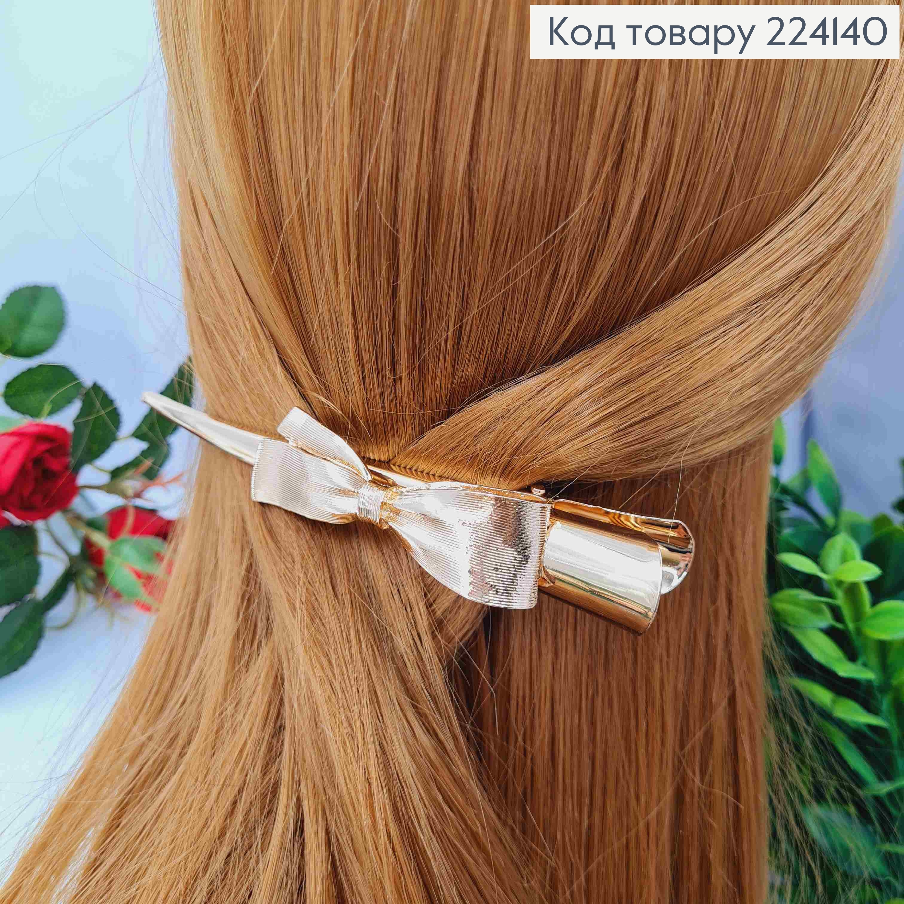 Заколка стрела металл с БАНТИКОМ, Золотого цвета, 13,5см.