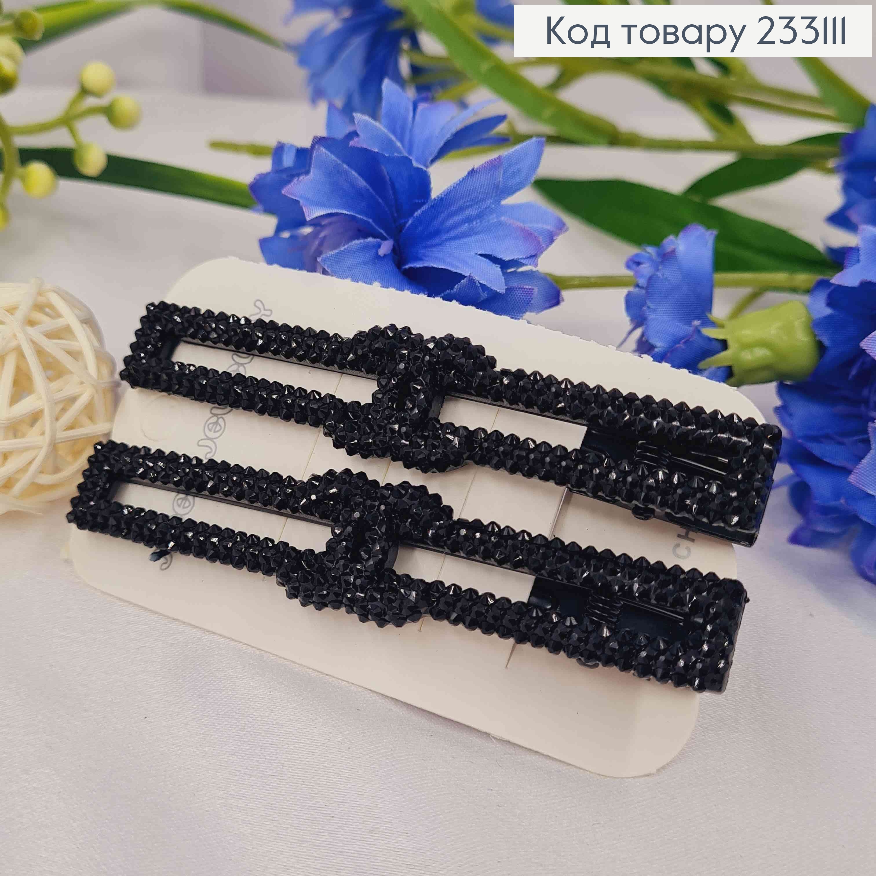 Набор: заколка на зажимчике с блестящими и черными камешками в ассортименте, 3см, черного цвета. 233152 фото