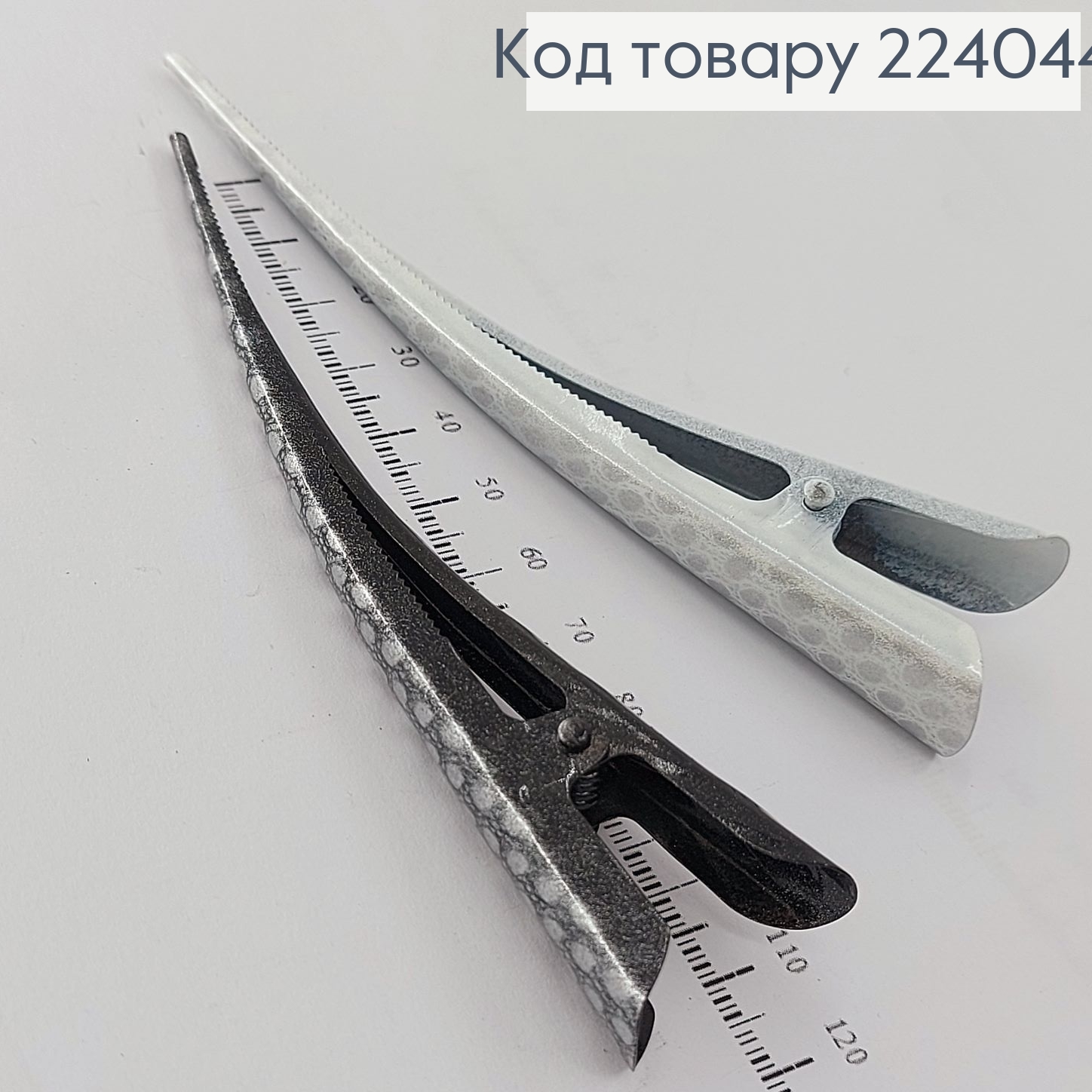 Заколка на зажимчике "Бантик" с блестящими и камешками Хамелеон в ассорт., Серебряного цвета, 5,5см. 233150 фото