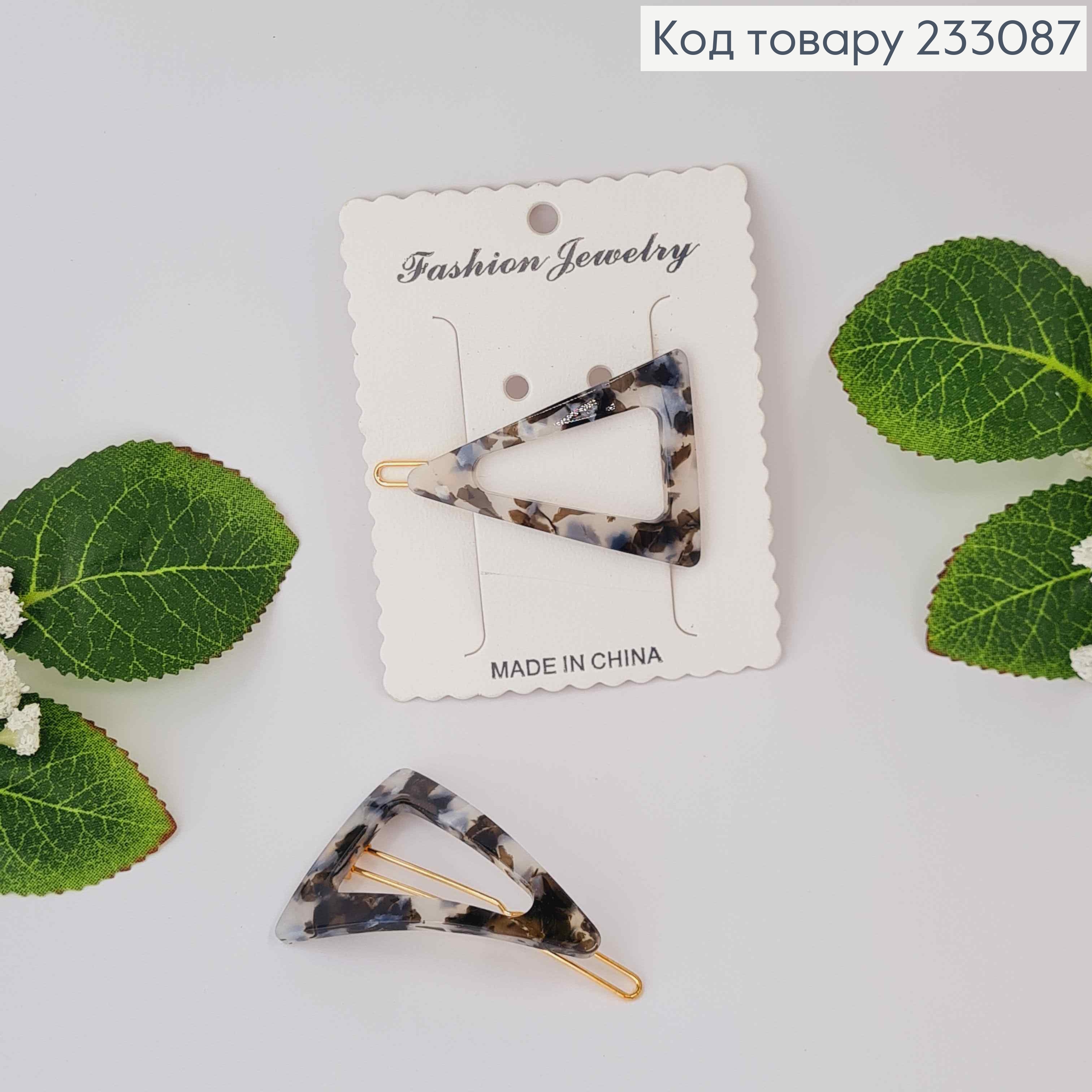 Заколка Треугольник 4,5см "Белый+черный мрамор"