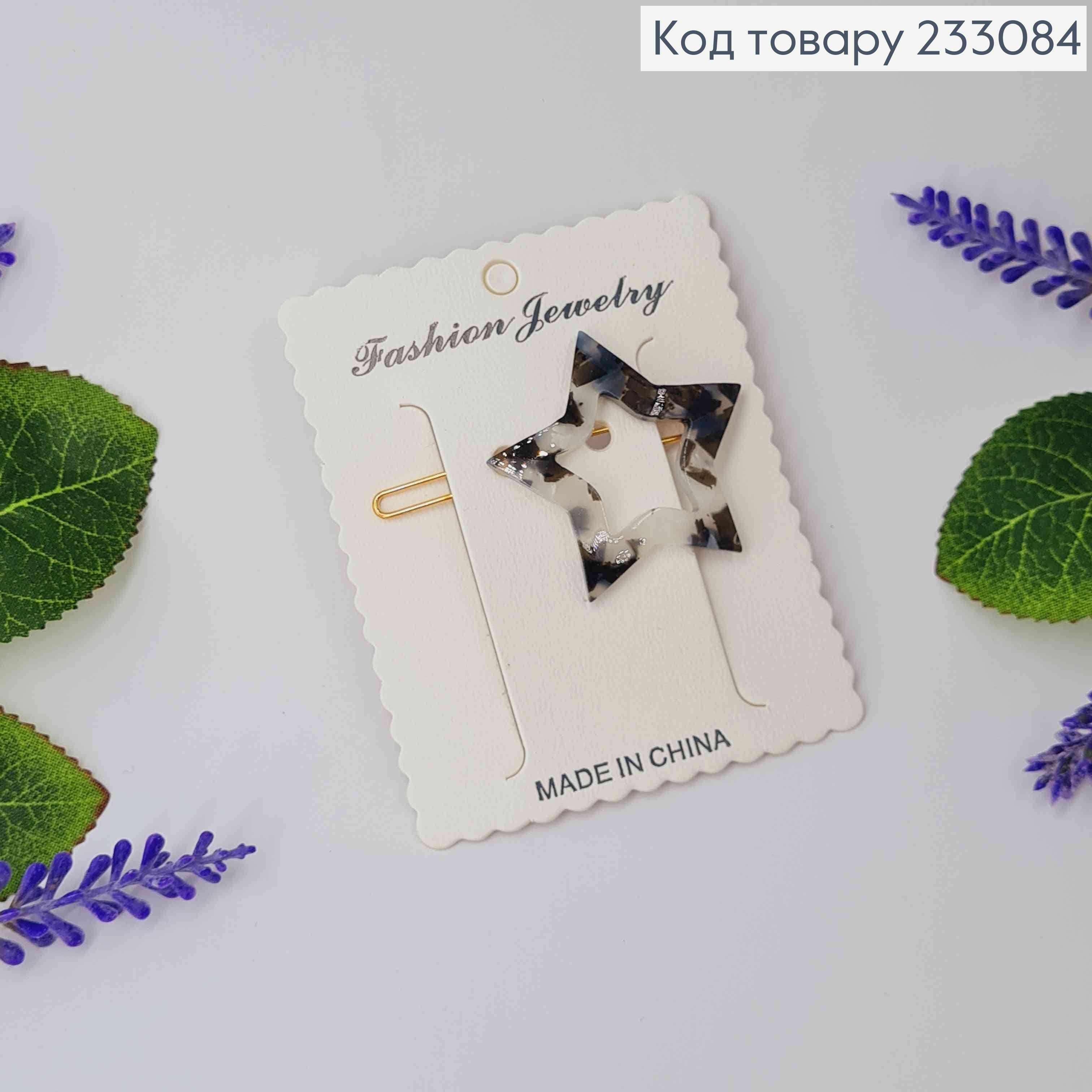Заколка Звездочка 4см "Белый+черный мрамор"