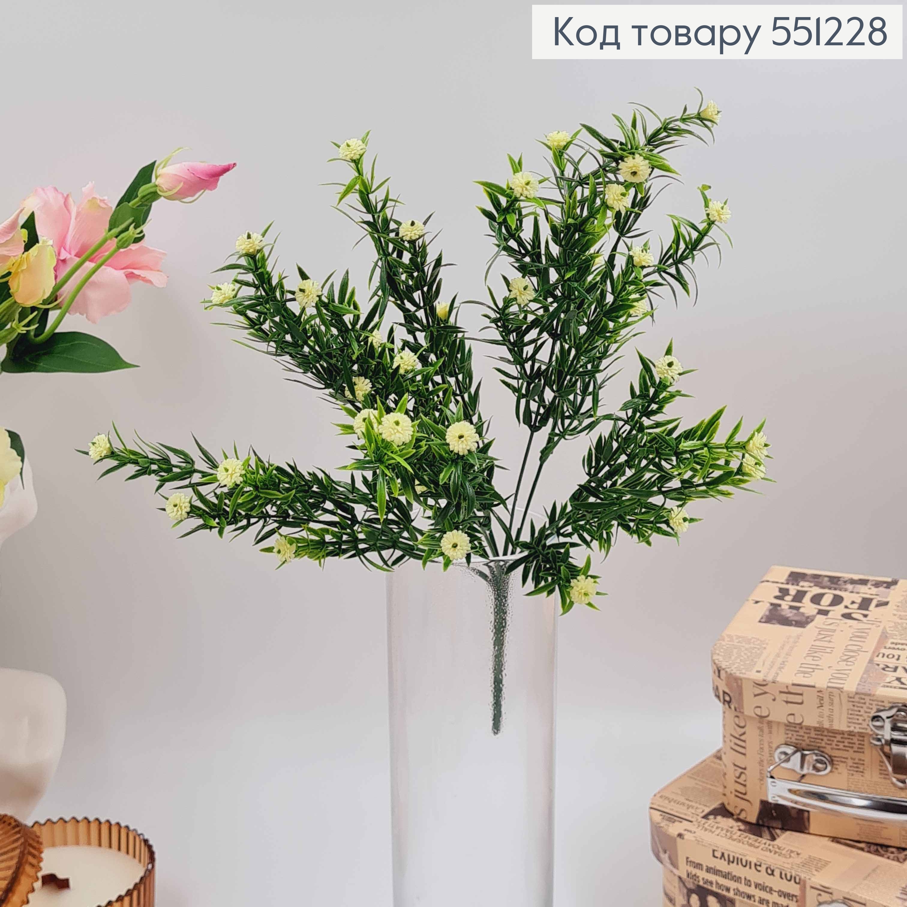 Зеленая пластиковая композиция с мелкими листиками и маленькими цветочками высотой 34см.